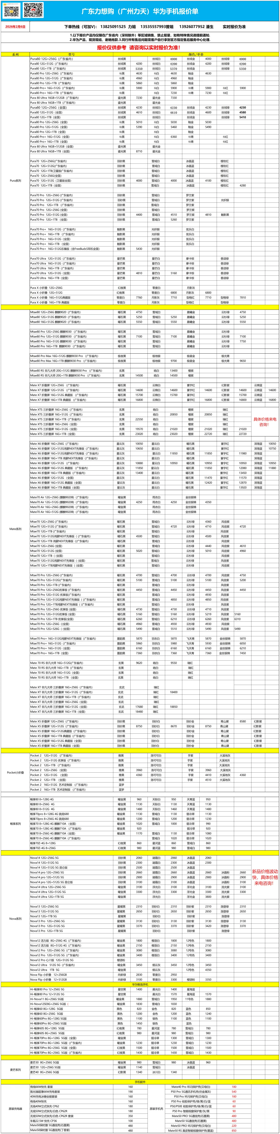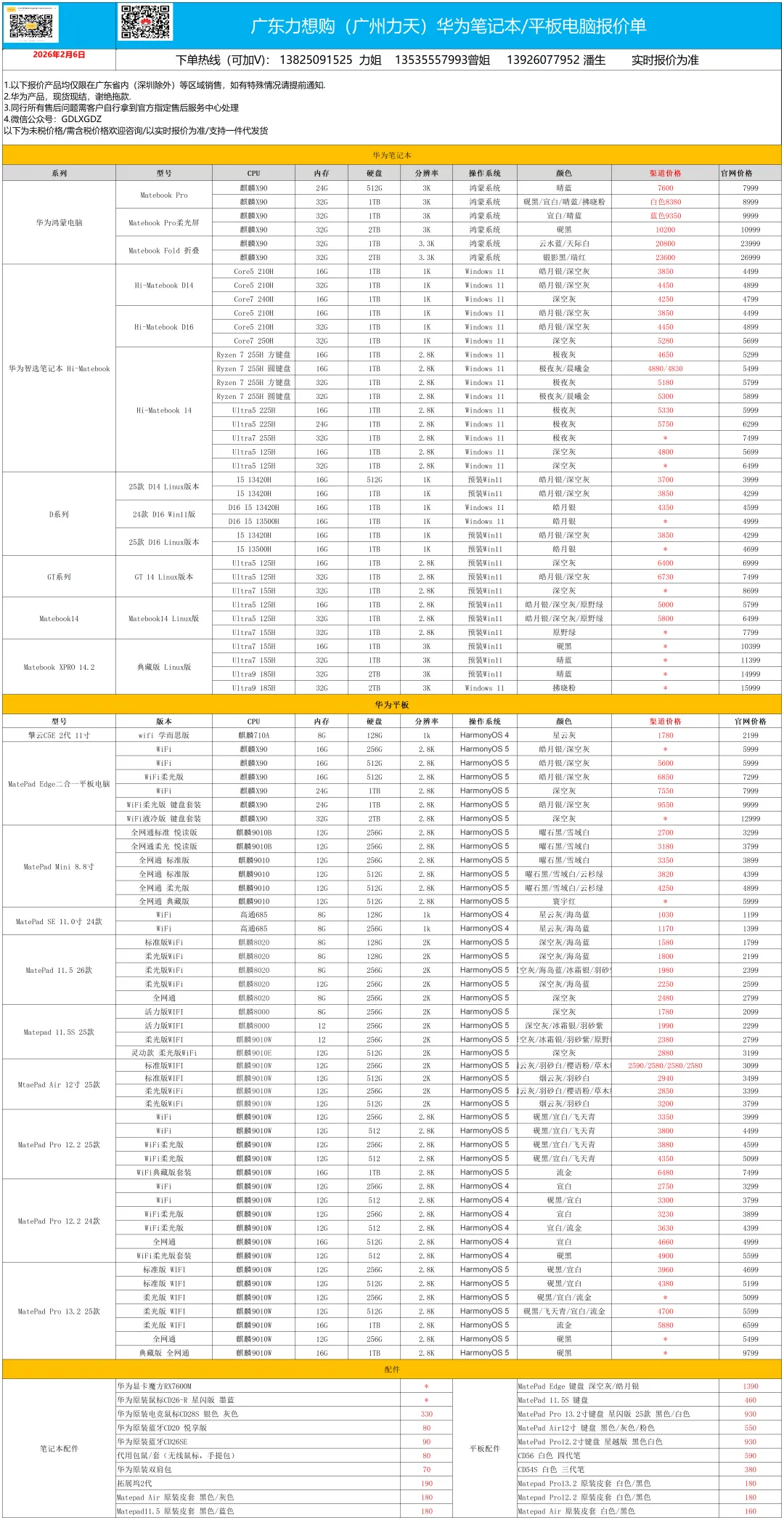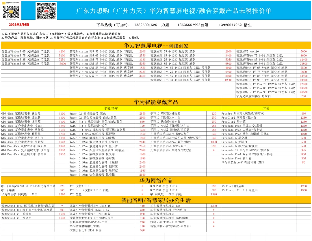 >2026.2.6广州力天(广东力想购)苹果与华为荣耀报价