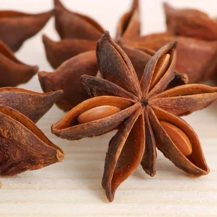 八角,即八角茴香、大茴香。性温,味辛、甘。散寒理气止痛。