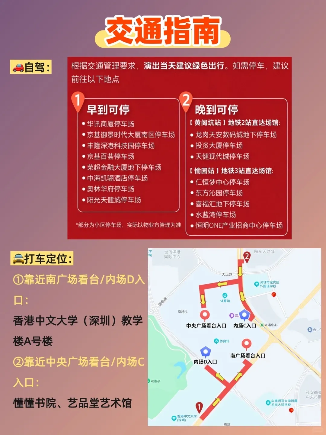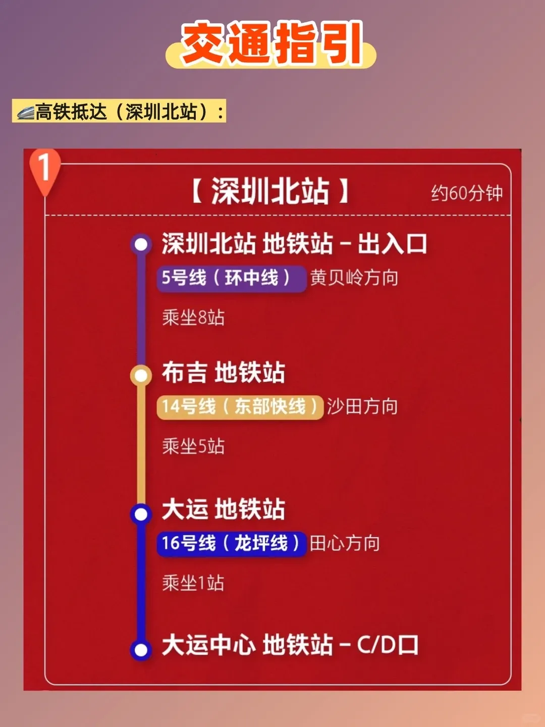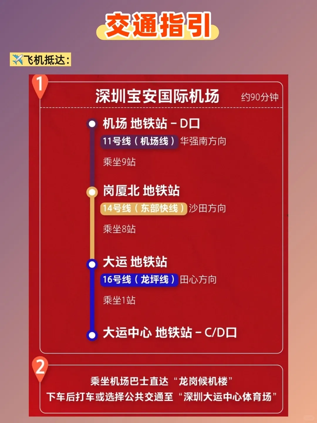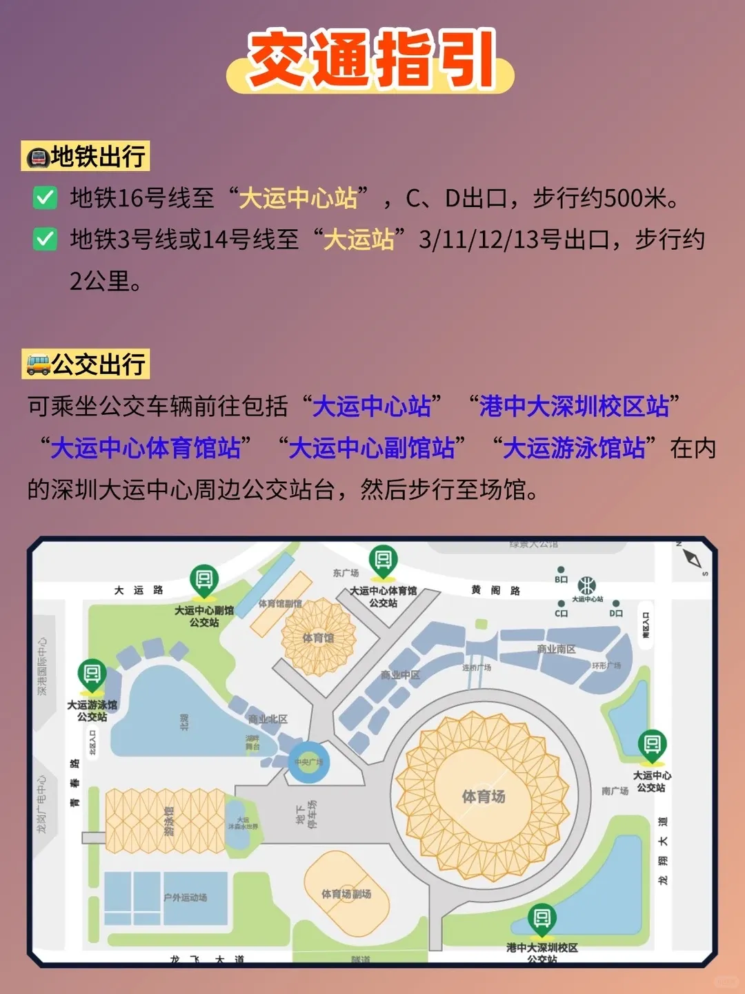 #地铁出行1️⃣乘坐深圳地铁16号线至“大运中心站”,C、D出口,步行约500米。
