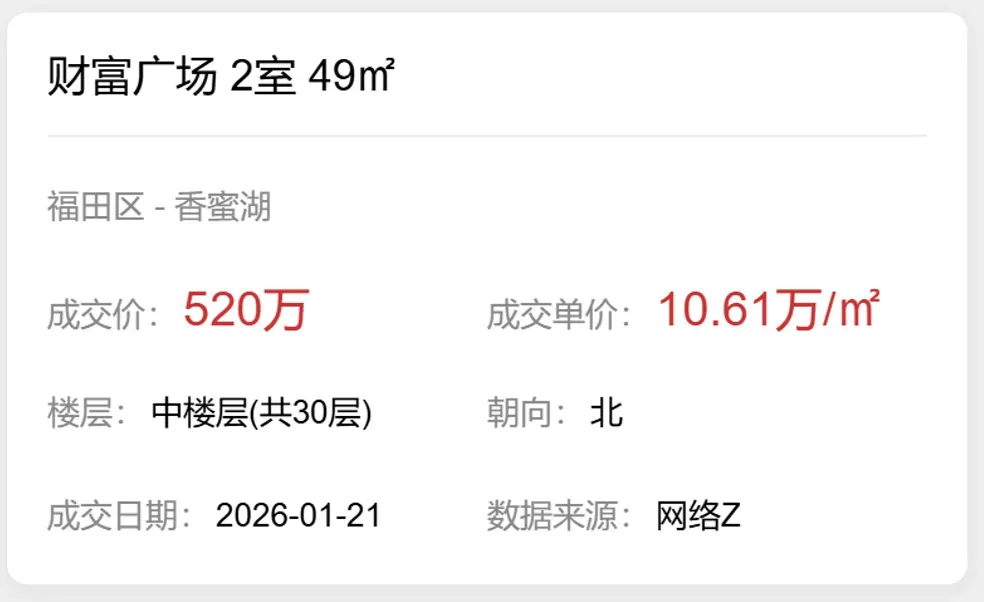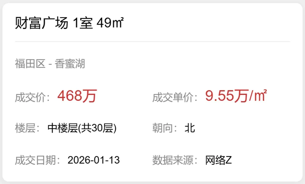 半个月内涨得最猛的,是福田香蜜湖的财富广场。