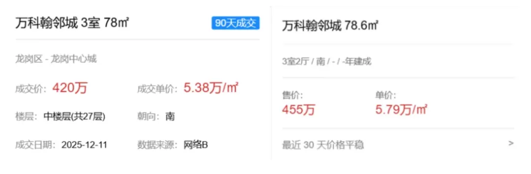 万科翰邻城已经从420万涨到460万,壹锦园的两房户型,也涨了小30万。