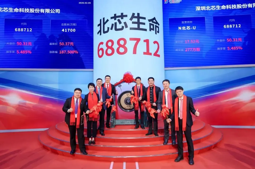 2026年2月5日,深圳北芯生命科技股份有限公司(以下简称“北芯生命”,688712.SH)成功在上海证券交易所科创板挂牌上市,本次公司发行价格为17.52元/股,开盘价为50.31元,较发行价上涨187.16%。以开盘价计算