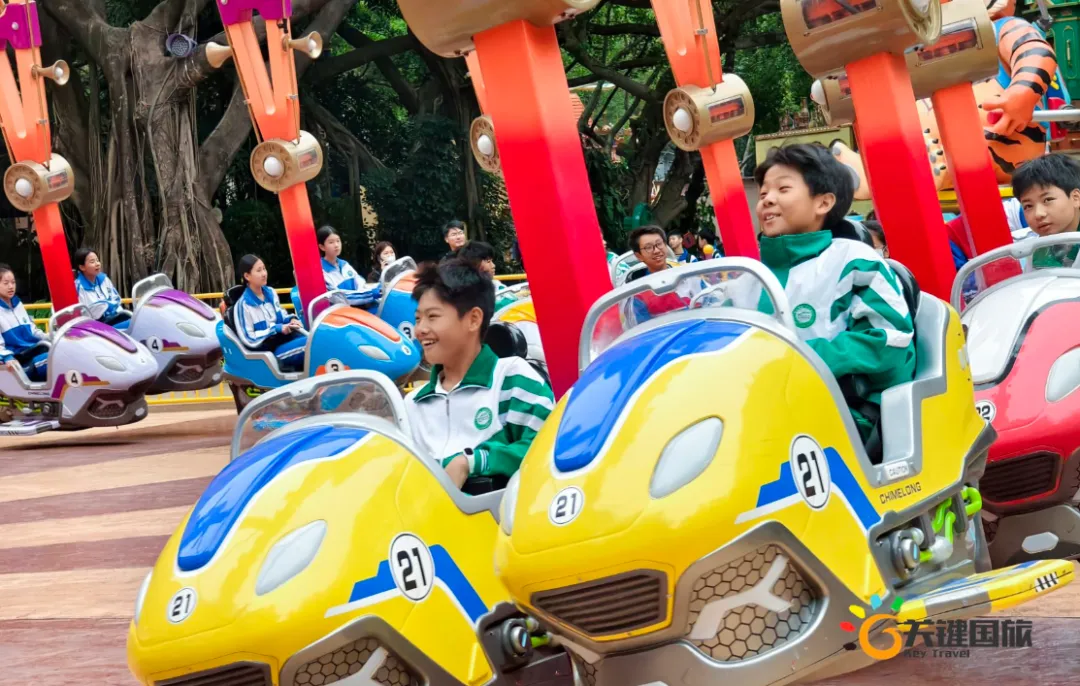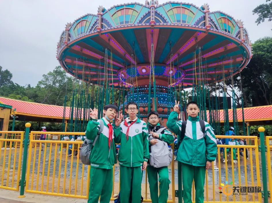 ☀️ 2025年12月4日,冬阳澄澈,笑意盈怀。420余名雅瑶师生携手出发,驶向广州长隆欢乐世界——一场以“向快乐出发,与青春同行”为主题的研学之旅,正式启程!没有铃声与作业本,只有旋转木马转出的童年回响、过山车腾跃时扬起的欢呼、小组任务里默契的眼神交汇,和一张张被阳光晒暖、被笑声点亮的青春面庞。快乐,在这里不是终点,而是出发的姿态;青春,在这里不靠定义,而由奔跑、协作、尝试与开怀本身写就。从雅瑶校园到长隆园区,变的是场景,不变的是少年眼里的光、肩并肩的温度,和那句无需言说的约定:我们,正以最本真的样子,奔赴属于自己的成长现场。——接下来,一起走进这场充满欢笑、勇气与同频心跳的青春纪行 🌟 一进入长隆欢乐世界,仿佛进入了一个充满奇幻与欢乐的童话世界。这里有刺激的过山车,在轨道上风驰电掣,让同学们感受到速度与激情的碰撞;有浪漫的旋转木马,五彩斑斓的灯光映照在同学们灿烂的笑脸上;还有充满挑战的垂直过山车,让大家在尖叫中释放压力,挑战自我。
