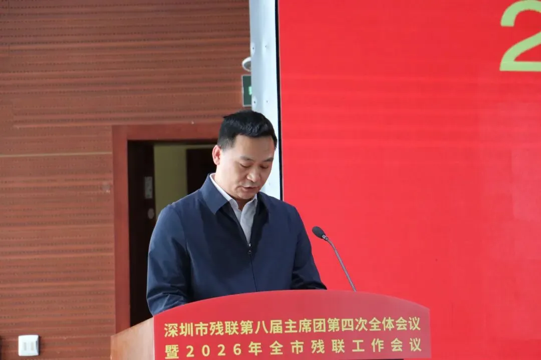2026年2月5日上午,深圳市残疾人联合会第八届主席团第四次全体会议暨2026年全市残联工作会议顺利召开。深圳市民爱残疾人综合服务中心作为市残联业务主管社会组织应邀参会,中心党支部书记、主任郑弘在会上作分享交流发言,围绕提供专业化服务、促进残疾人社会融合等主题,分享了民爱中心近年来的实践探索、获得成效及相关经验。