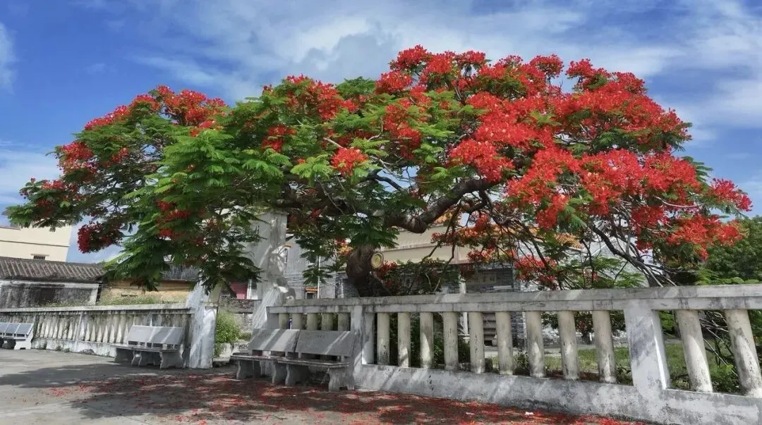 来到田心村,已经是傍晚,夕阳下,我看见村口一棵高大的凤凰花树花开正艳,一树的红彤彤,煞是好看。我心想,这是好兆头,我会找到工作的。