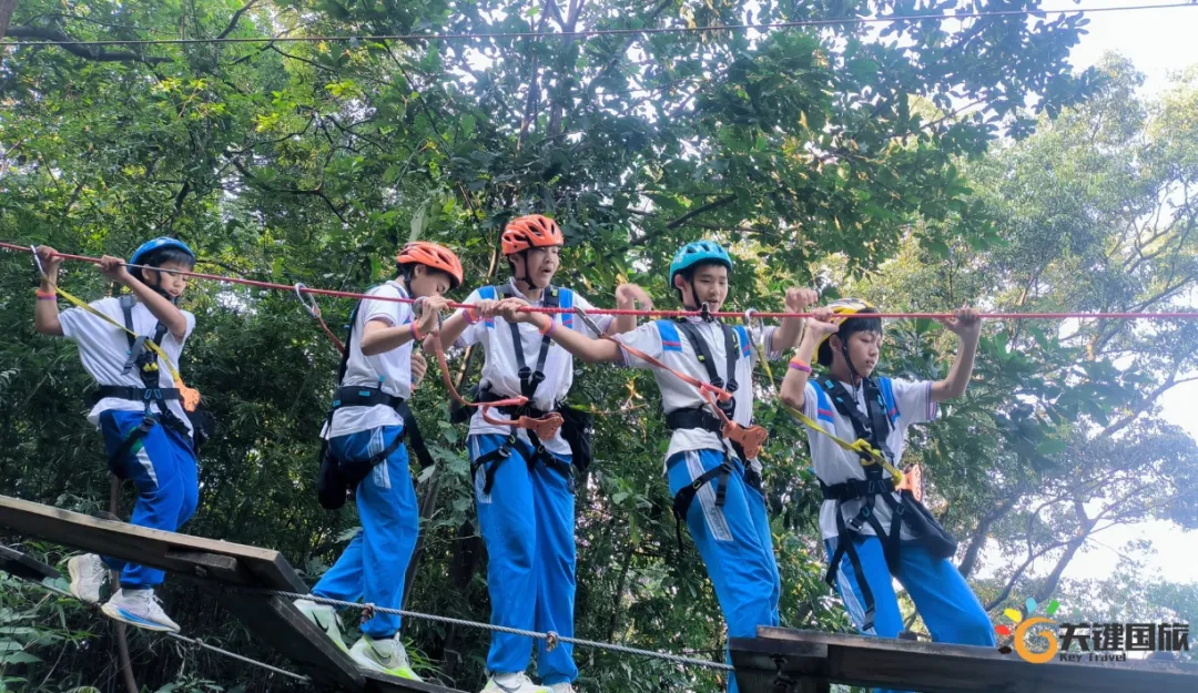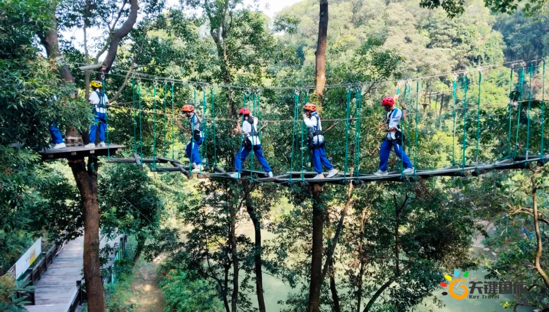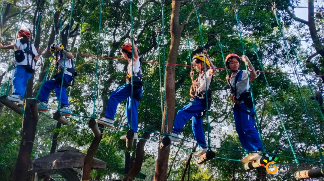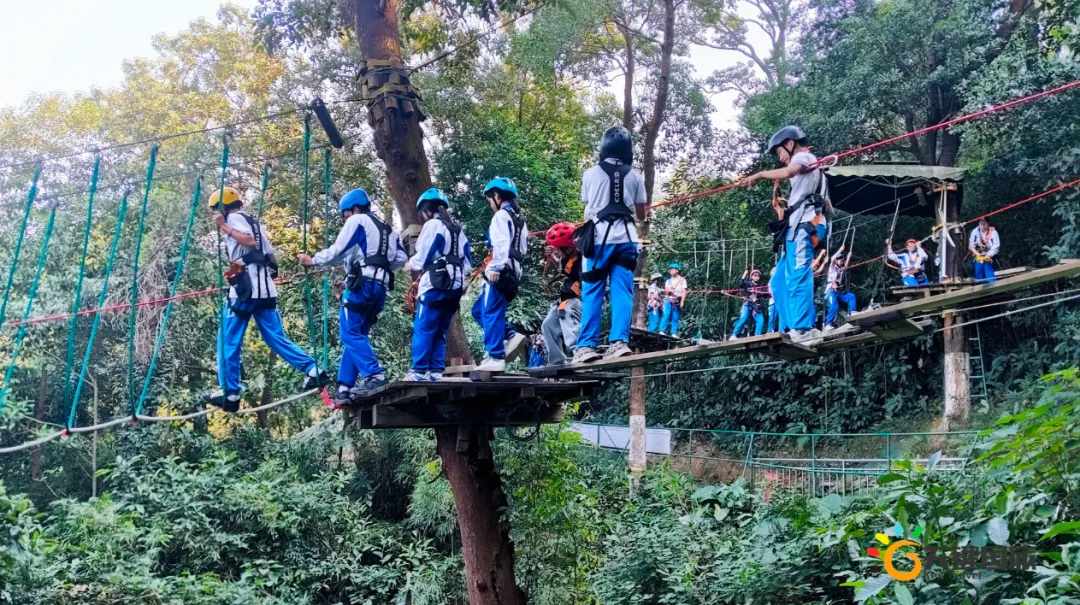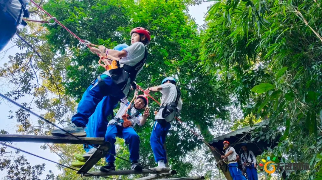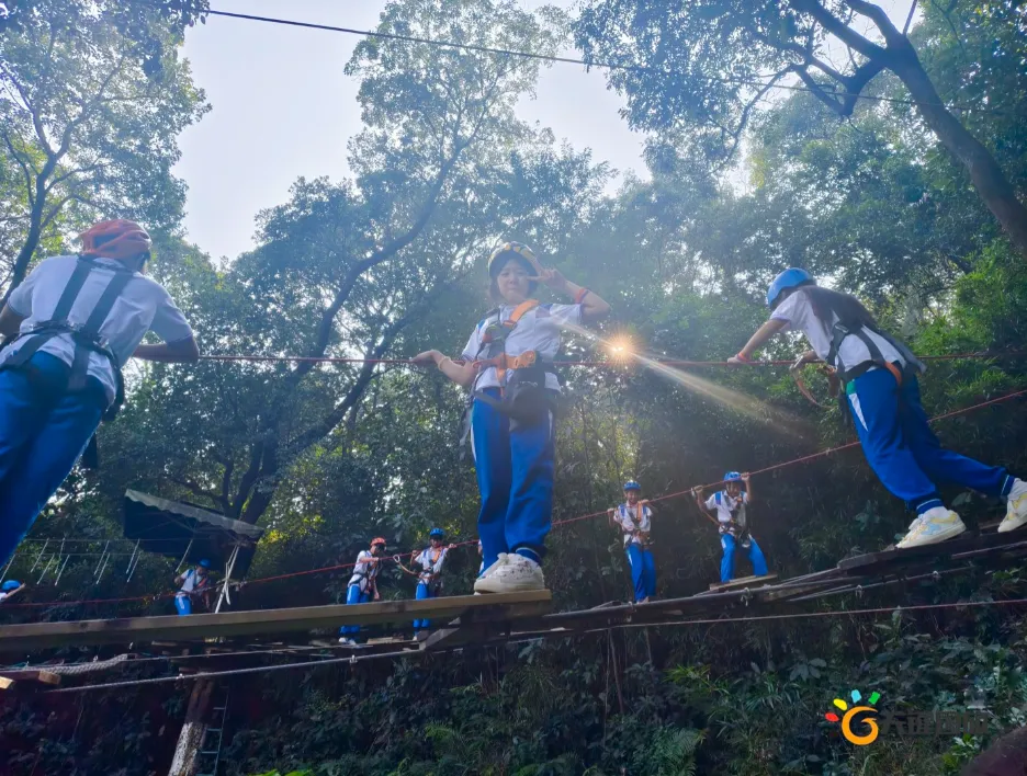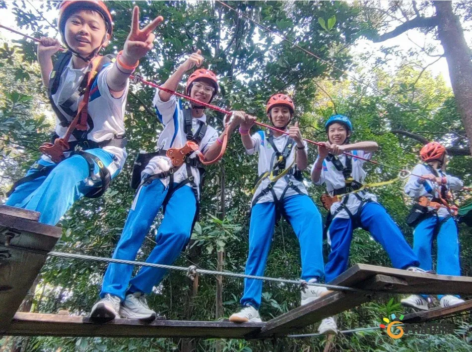 广州市增城区永宁街永新中学八年级于2025年12月5日开展了以“飞越丛林·挑战自我”为主题的秋季研学之旅,500余名师生共赴广州飞越丛林拓展基地,在这片空气澄澈、绿意盎然的森林课堂中,开展了一场融合自然教育、体能挑战与团队协作的沉浸式实践。活动中,同学们通过攀索越障、凌空跨步等一系列项目,不仅锻炼了身体、磨砺了勇气,更在协作中深化信任、在挑战中见证成长,真正践行了“在自然中学习,在行动中担当”的研学宗旨。在这个快节奏的时代,自然的力量与探险的乐趣似乎渐渐被遗忘。但在广州飞越丛林,我们始终相信:每个孩子都是天生的探险家,他们内心蕴藏着挑战自我的勇气,更渴望在真实世界中获得成长的勋章。我们的研学活动,正是为这样的探险家而设计——在这里,丛林不只是背景,更是课堂;挑战不只是游戏,更是成长的仪式。让我们一同唤醒孩子心中那份与生俱来的勇气与探索欲,让每一次攀爬、每一次合作,都成为他们走向更强大自我的生动注脚。在本次研学活动中,学生们沉浸式参与“达芬奇密码”逻辑解谜、“飞盘嘉年华”策略协作、“枕头大战”趣味破冰等多元拓展项目。一场场挑战,既是意志的淬炼场,也是信任的试验田:在限时解密中激发思维张力,在飞盘传递中读懂默契与责任,在欢笑对抗中释放压力、重建联结。学生们不仅突破体能与心理边界,收获“我做到了”的笃定自信;更在真实协作中理解沟通的价值、担当的意义、集体的力量——让团队精神从口号落地为行动,让成长在课本之外自然发生。此次“飞越丛林·挑战自我”研学之旅虽已圆满落幕,但那份凌空跨越的勇气、协作闯关的默契、直面高度的笃定,已在每位永新学子心中扎根生长。这不是一次简单的户外体验,而是一堂行走的“成长思政课”——在钢索与树冠之间,在喘息与坚持之间,在“不敢”到“我行”的一瞬之间,孩子们读懂了责任、信任与突破的真义。
