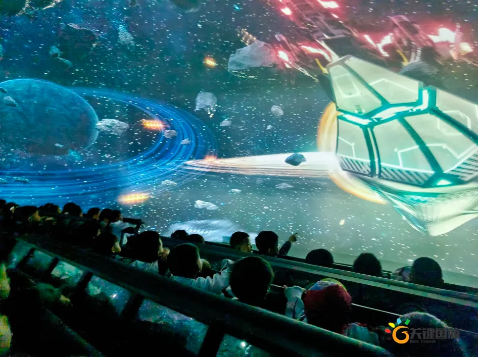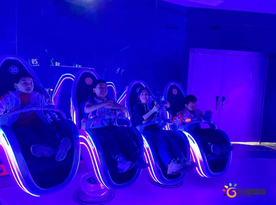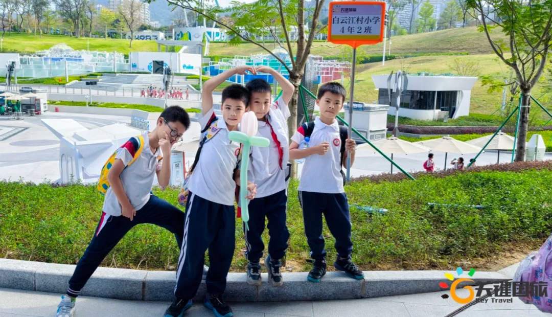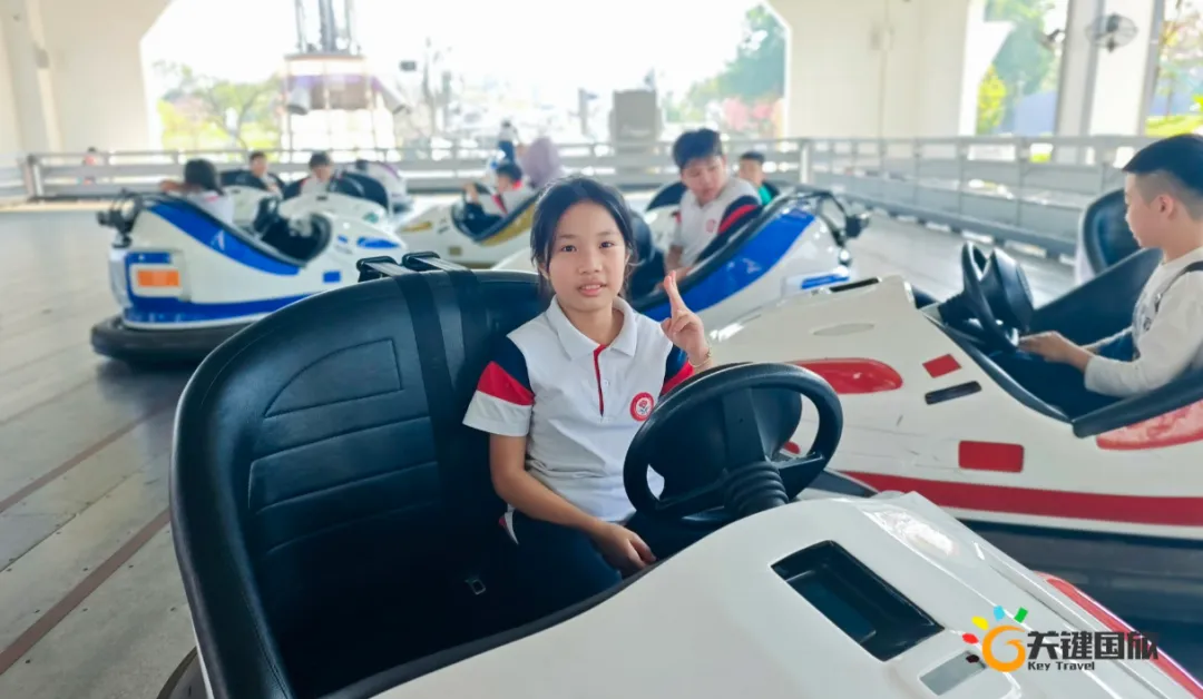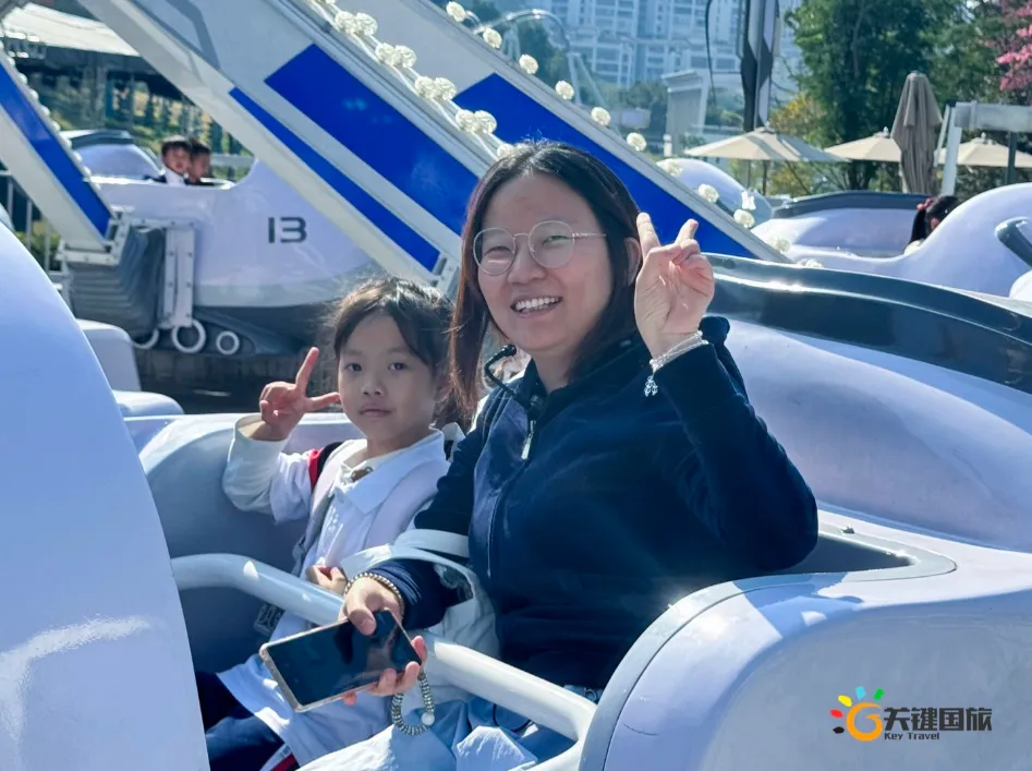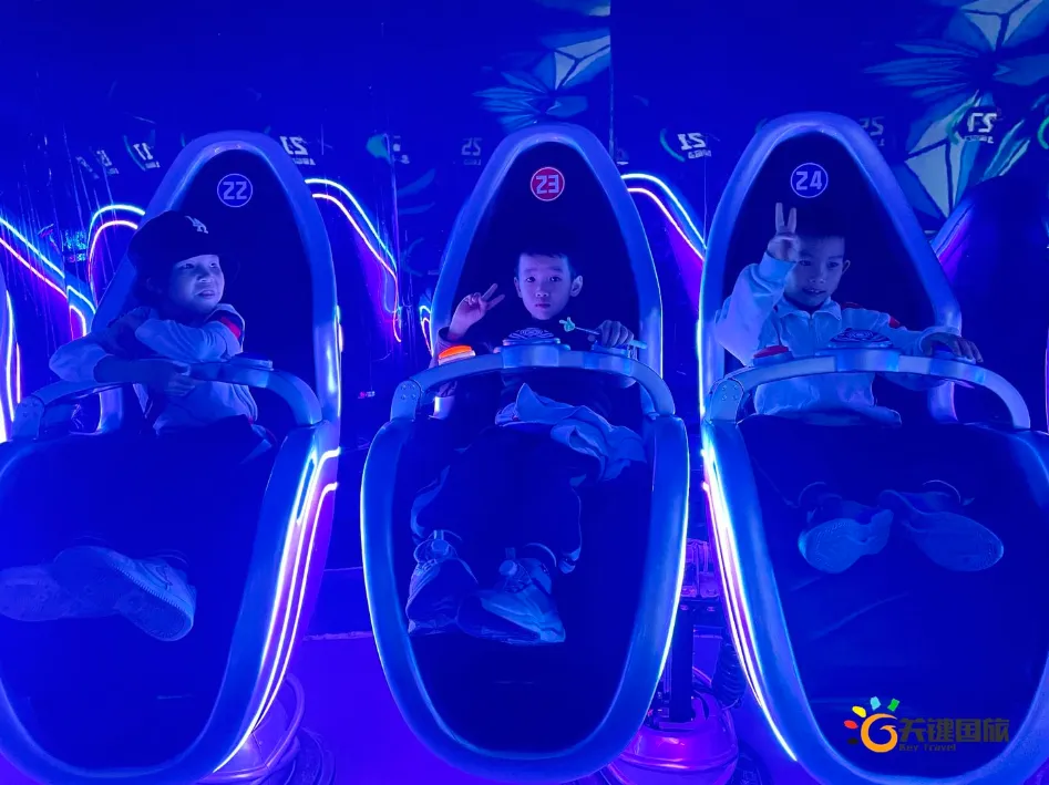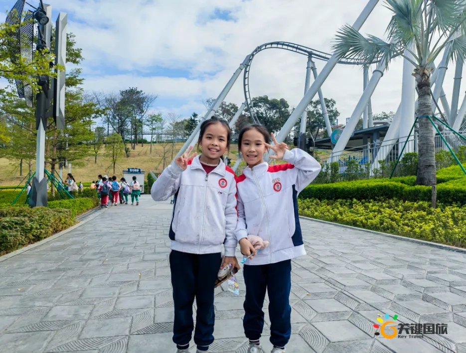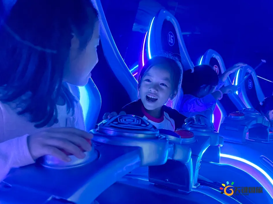 各班师生陆续抵达目的地,在乐园入口处拍摄了充满朝气的集体合影,为本次研学之旅留下了第一张珍贵记忆。作为广州历史悠久、广受喜爱的主题乐园,星纪世界·南湖乐园以焕然一新的“未来科技”主题场景,迎接江村小学的学子们。在这里,一场融合智慧启迪、科学探索与想象力激发的研学之旅正式启程——这不仅是一次出行,更是一堂行走中的成长课堂,带领孩子们在体验中学习,在探索中发现,向着更广阔的未来迈出坚实一步。在“光子奇航”过山车上,同学们的阵阵惊呼与畅快呐喊,正是对加速度最生动的物理课堂;“太空梯”旋转椅徐徐升起,大家在起伏回转间亲身体验失重与平衡的奇妙原理;“星跃之旅”5D影院中,此起彼伏的惊叹仿佛真的穿越虫洞,踏上了一段真实的星际旅程;而“星辕”观光小火车里,欢声笑语随着铁轨蔓延,沿途风景如画,轻松惬意中满载着探索的愉悦……更多精彩项目,仍在等待着同学们一一解锁、亲身感受。