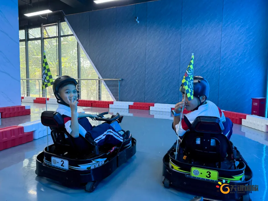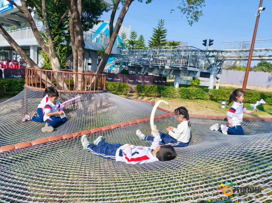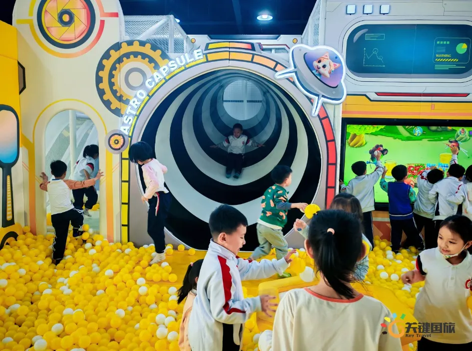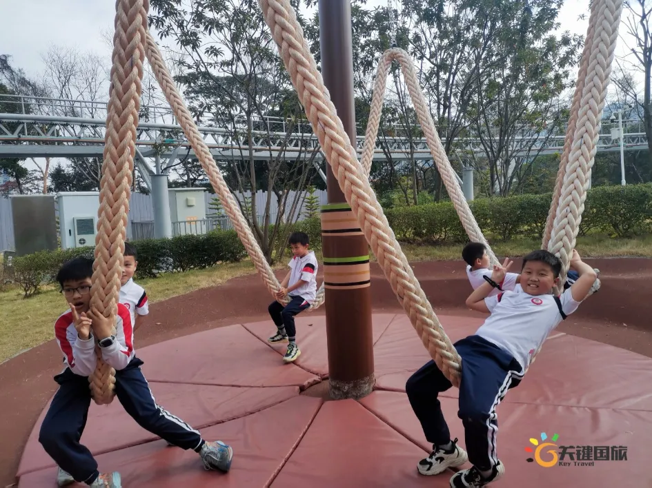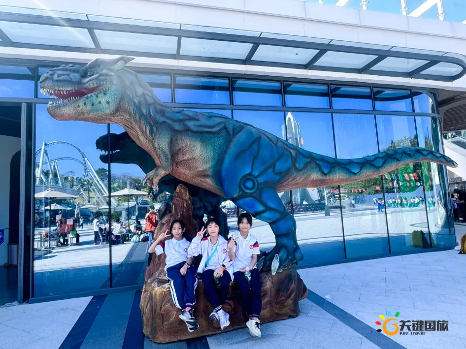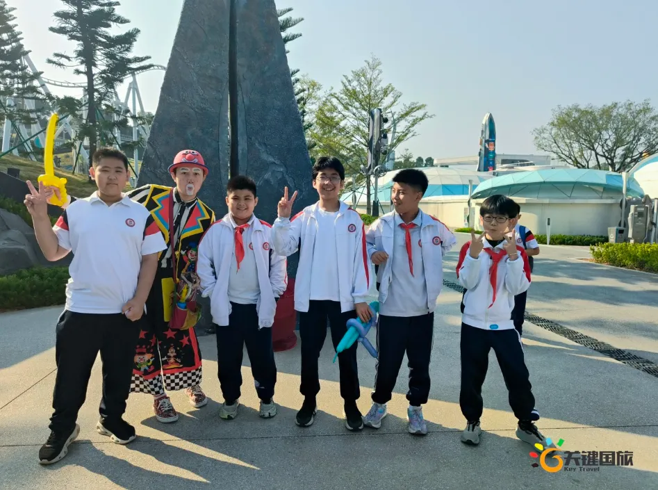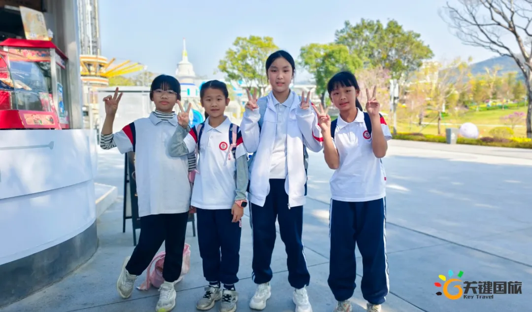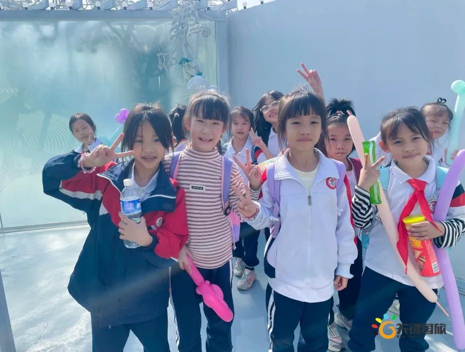 各班师生陆续抵达目的地,在乐园入口处拍摄了充满朝气的集体合影,为本次研学之旅留下了第一张珍贵记忆。作为广州历史悠久、广受喜爱的主题乐园,星纪世界·南湖乐园以焕然一新的“未来科技”主题场景,迎接江村小学的学子们。在这里,一场融合智慧启迪、科学探索与想象力激发的研学之旅正式启程——这不仅是一次出行,更是一堂行走中的成长课堂,带领孩子们在体验中学习,在探索中发现,向着更广阔的未来迈出坚实一步。在“光子奇航”过山车上,同学们的阵阵惊呼与畅快呐喊,正是对加速度最生动的物理课堂;“太空梯”旋转椅徐徐升起,大家在起伏回转间亲身体验失重与平衡的奇妙原理;“星跃之旅”5D影院中,此起彼伏的惊叹仿佛真的穿越虫洞,踏上了一段真实的星际旅程;而“星辕”观光小火车里,欢声笑语随着铁轨蔓延,沿途风景如画,轻松惬意中满载着探索的愉悦……更多精彩项目,仍在等待着同学们一一解锁、亲身感受。