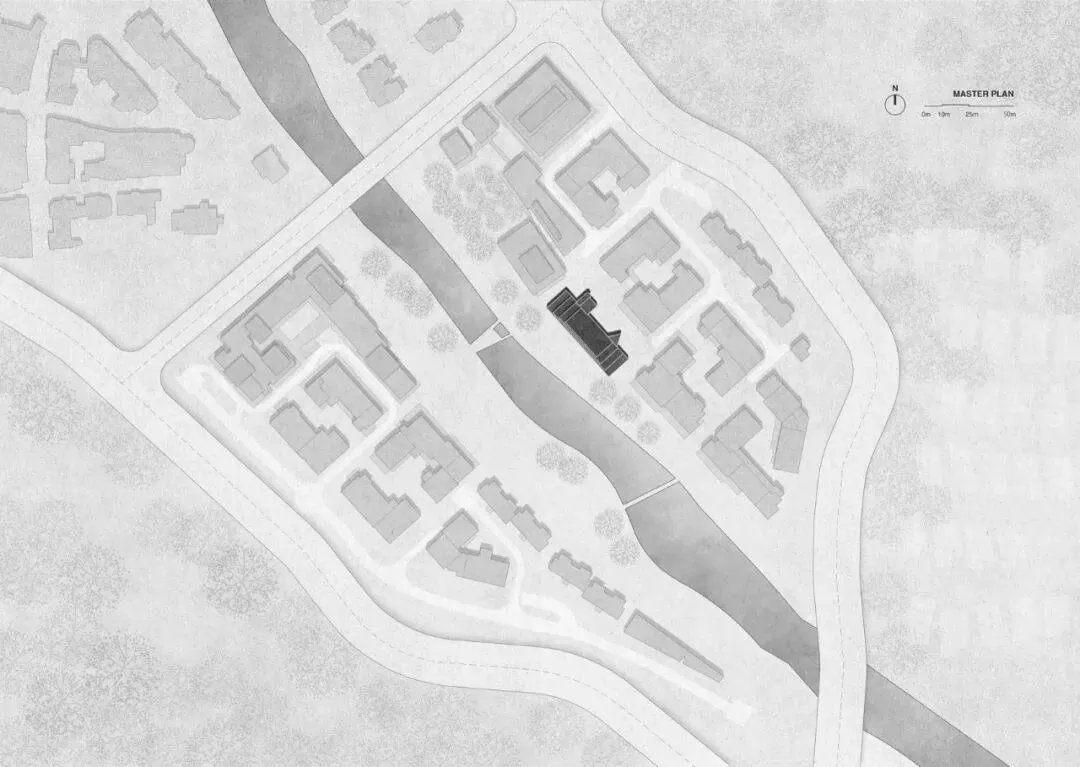 理想国酒店项目位于广州九龙湖阿那亚, 是为文化品牌naive理想国打造的一个集合书店、咖啡简餐、住宿功能一体的复合型空间。九龙湖距离广州市区1小时车程,被2.5万亩原生山林与湖域环绕。建筑选址在小镇河的东岸,背靠广袤的湖山风光,同时与社区美术馆、食堂相邻,在这样一个一半城市烟火一半自然的场地之中,我们希望把本土文化融入空间叙事,创造一个有温度、有情感的文化空间。