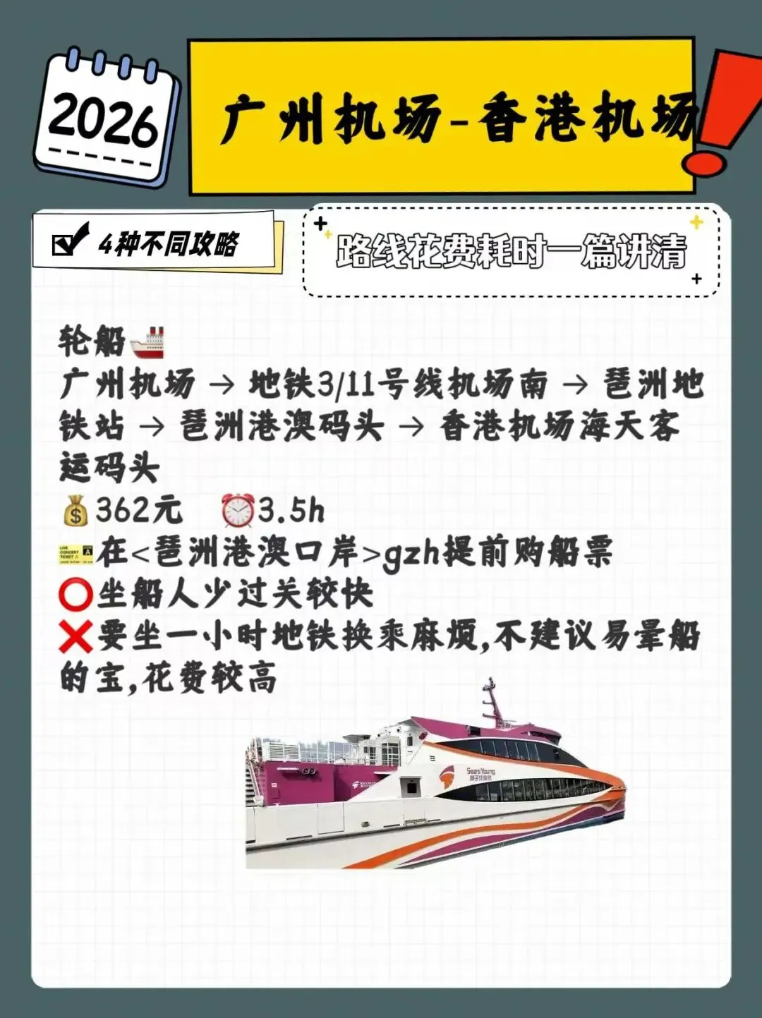 ❌要坐一小时地铁换乘麻烦,不建议易晕船的宝,花费较高