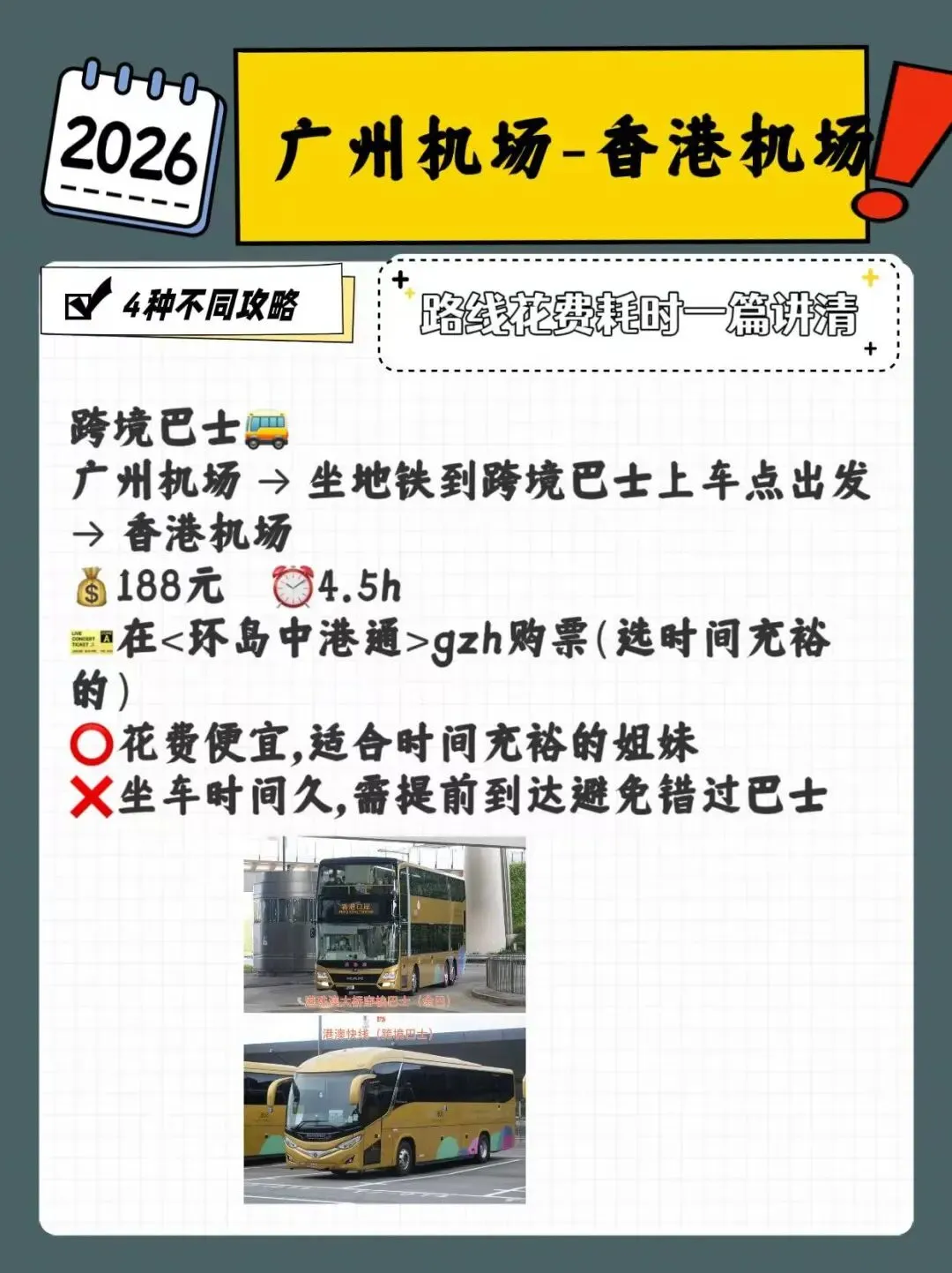 ❌坐车时间久,需提前到达避免错过巴士