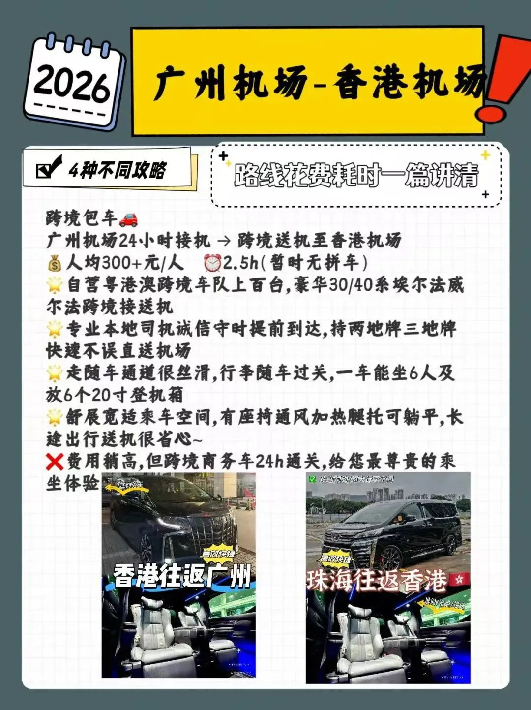 ❌费用稍高,但跨境商务车24h通关,给您最尊贵的乘坐体验