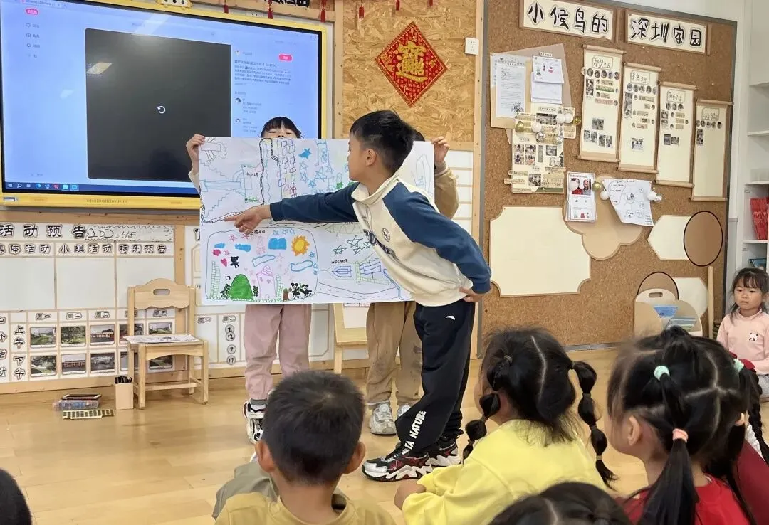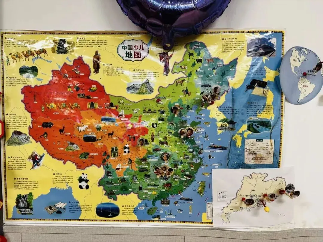 墙上并列的中国地图与深圳地图,引发了孩子们对“来处”的探寻,想象的航线连接思念与向往,让地图成为专属的成长叙事。