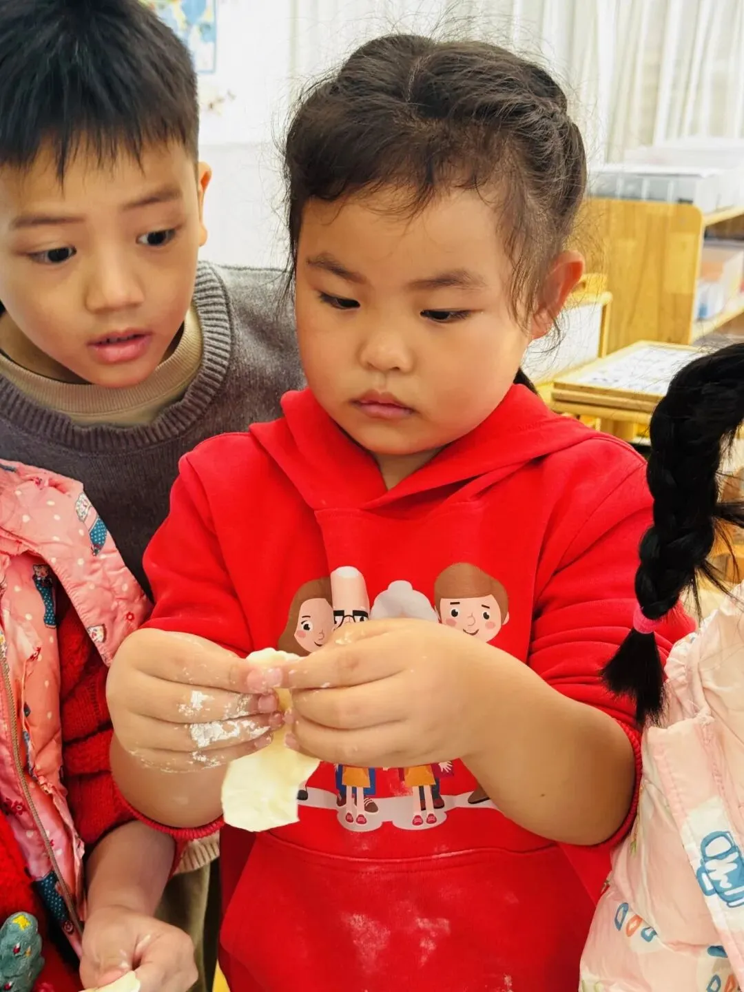 北方饺子,广东虾饺,一场文化比较探究就此展开。孩子们观察对比两者的皮料、形态与寓意,用黏土创作“融合饺子”,在动手实践中感悟文化无高低,差异成就丰富,而食物正是最亲切的文化载体。