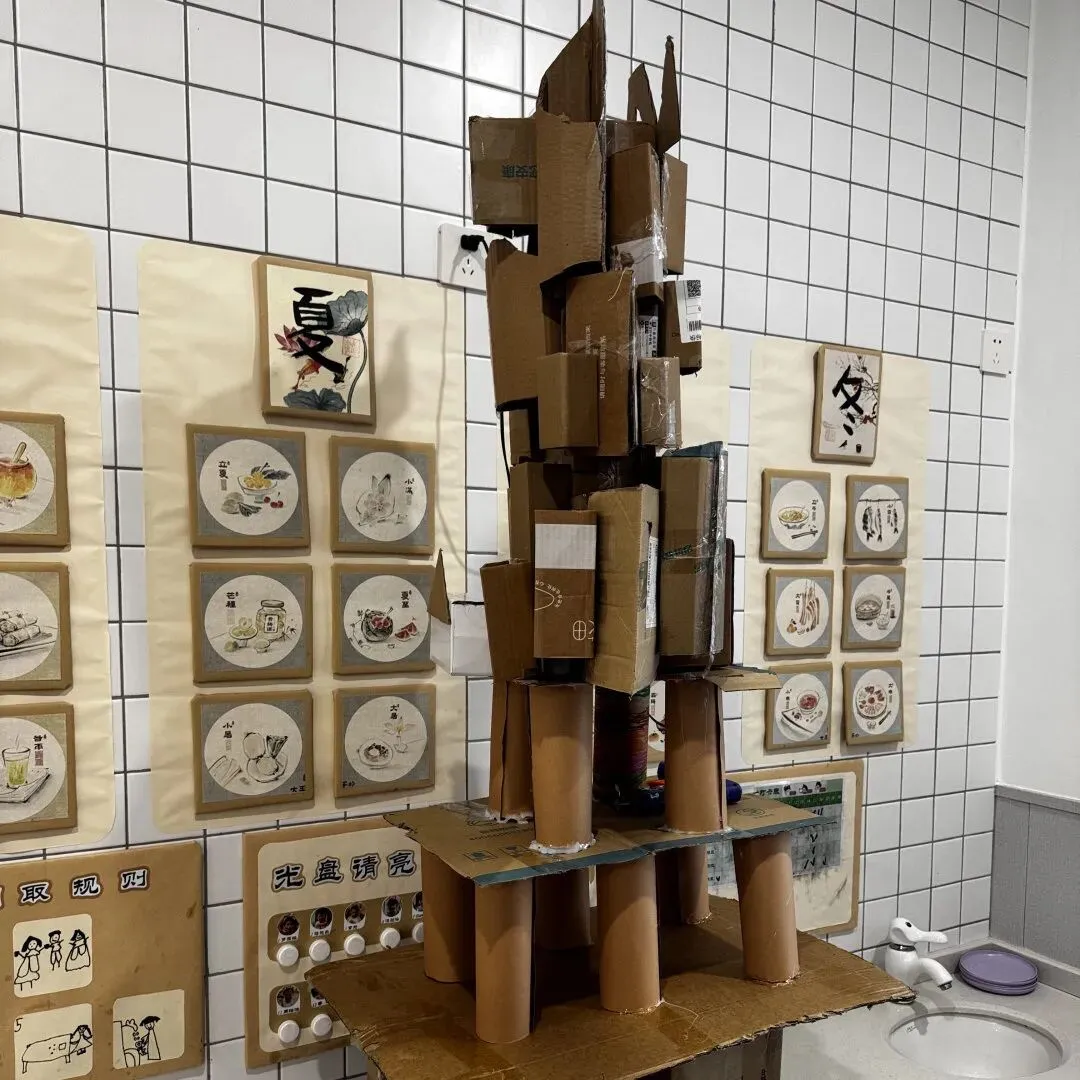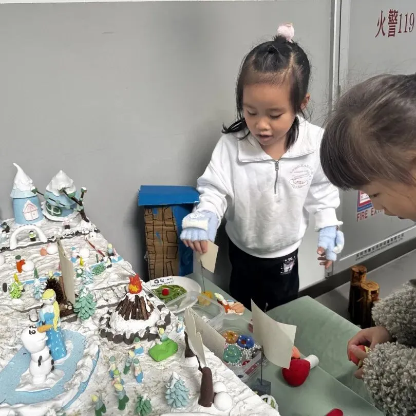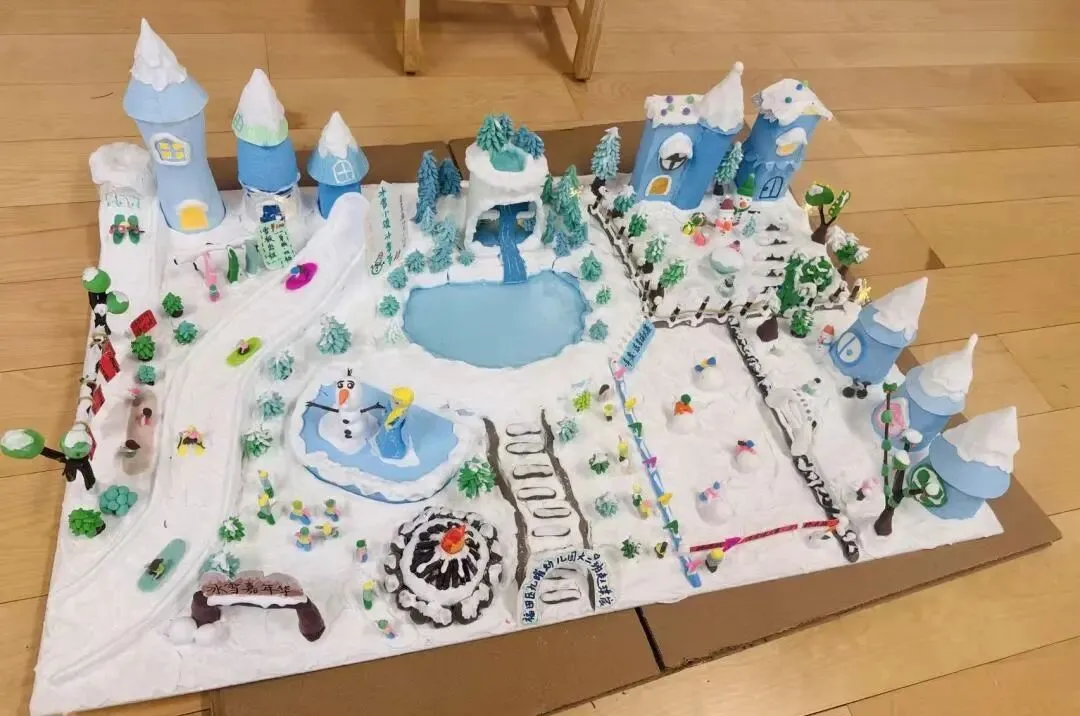 第一版模型完成后,孩子们变身“优化师”,围绕“高塔更稳”“雪景更真”等问题调试改进,用胶带加固结构、棉花营造氛围,在“测试-调整”中体会工程思维的严谨。