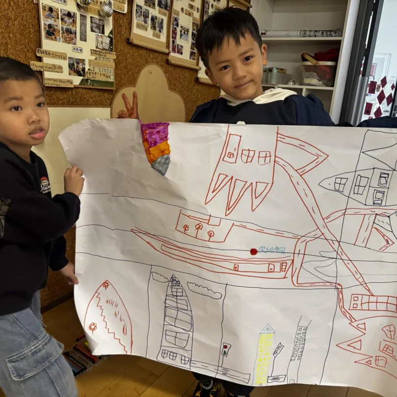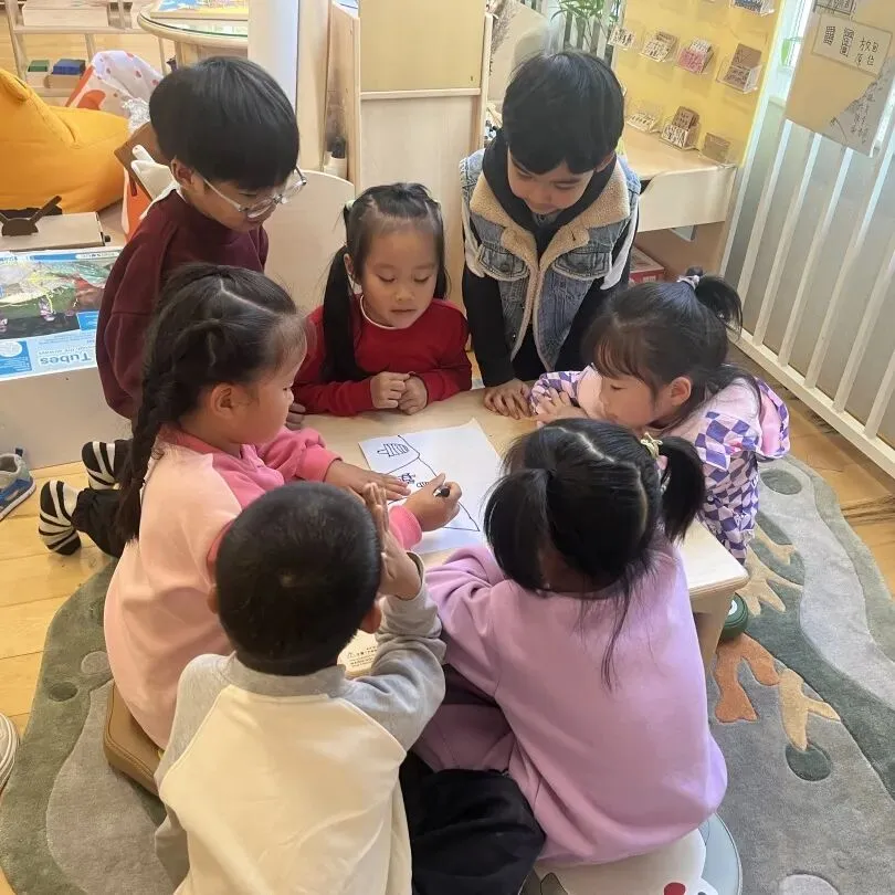 面对“仅一个区域角”的限制,孩子们需合理安置多元场景。他们分组讨论布局策略,在权衡取舍中优化方案,最终绘出《深圳家园区域角总体规划图》,实现系统思维与空间规划能力的可视化呈现。