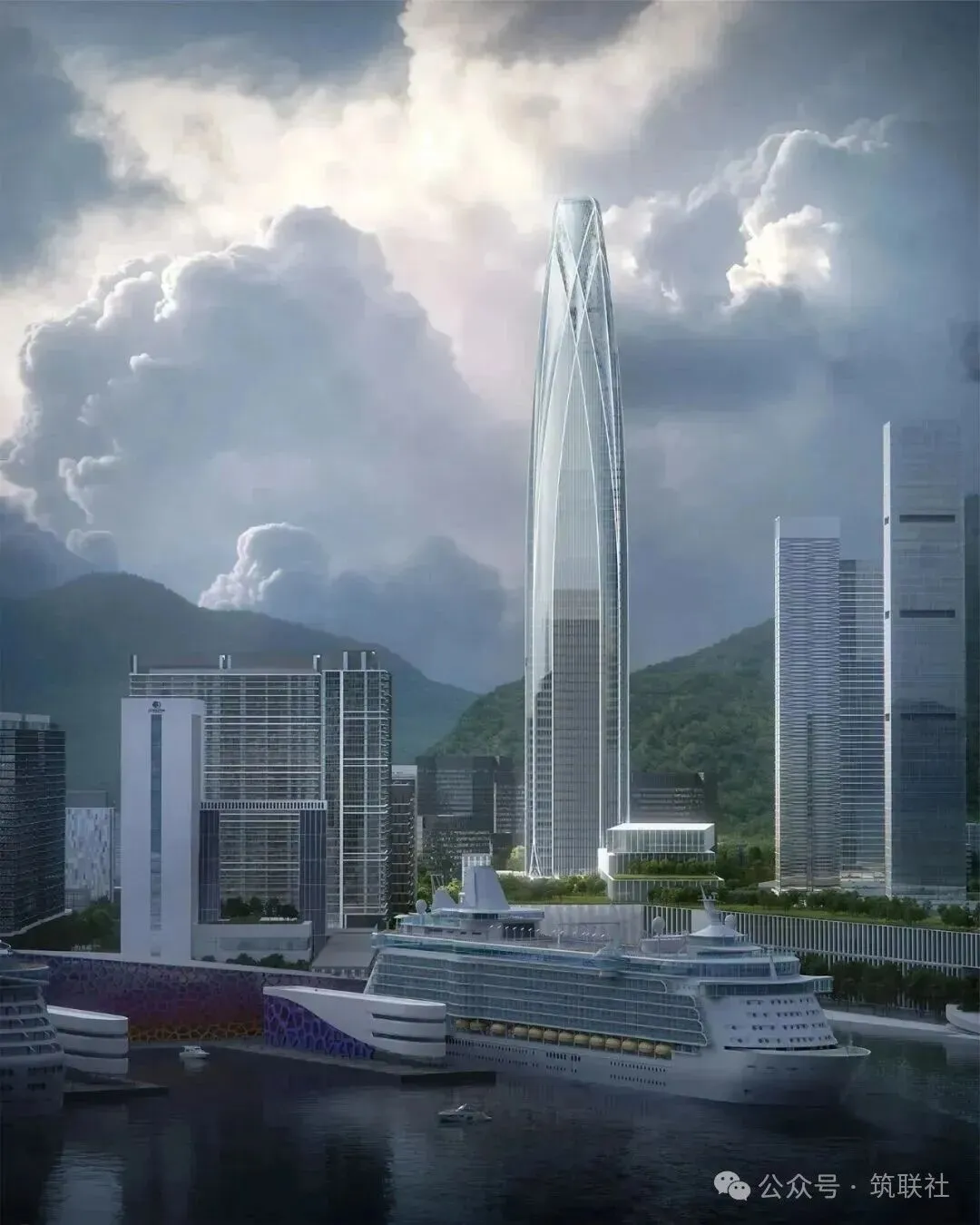 在形体生成上,建筑充分回应场地风环境,其基础体量采用利于引导气流、降低风荷载的圆形平面,整体轮廓自下而上如风帆般轻盈展开,最终收束于流畅的弧形冠顶。