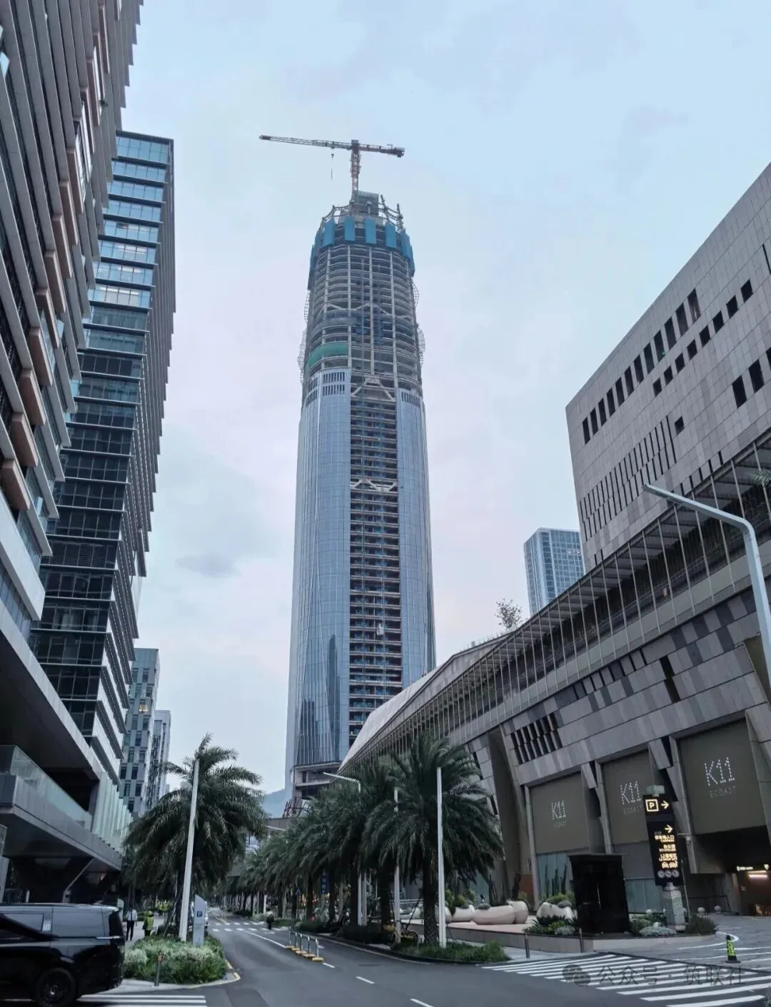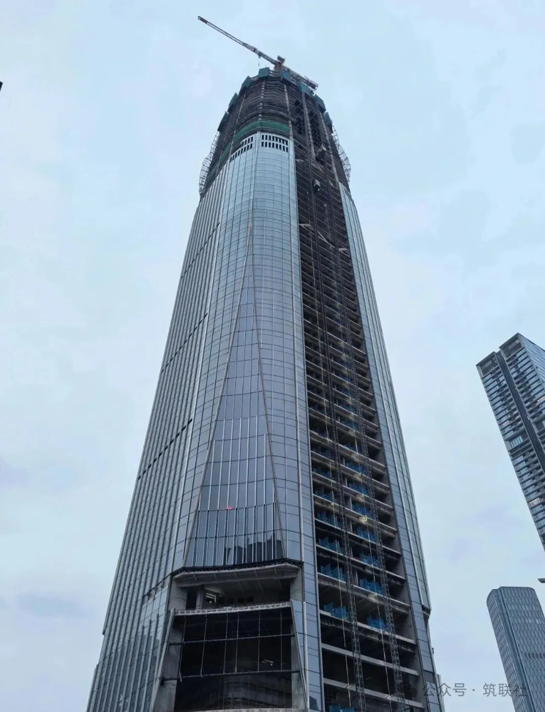 根据最新消息显示,截止2026年1月中旬,项目主体结构已建至约50层左右,幕墙安装工作正在同步推进。目前已完成约30%的幕墙单元安装,银灰色玻璃幕墙在阳光照射下已初具雏形。