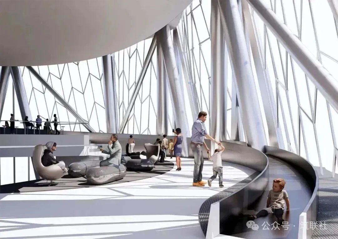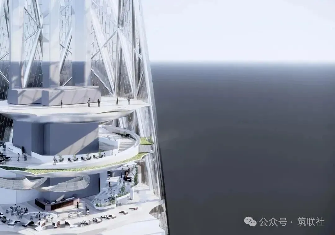 该塔楼分为三大功能区,低区为注重协同与视野的办公空间;中区是拥有专属空中大堂与服务的奢华酒店;顶端则悬浮着全景观光层。