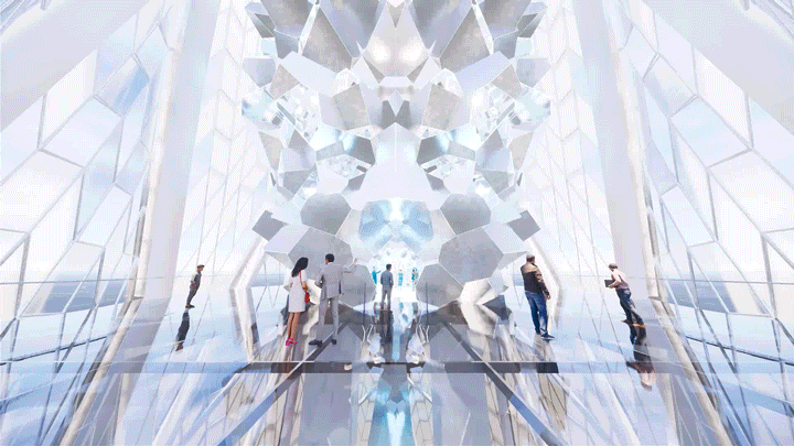 其中最吸引人的的是冠顶内部的“光影之冠”沉浸式体验空间。访客可步入其中,体验一场融合城市景观、自然现象与艺术构想的多维光影盛宴。