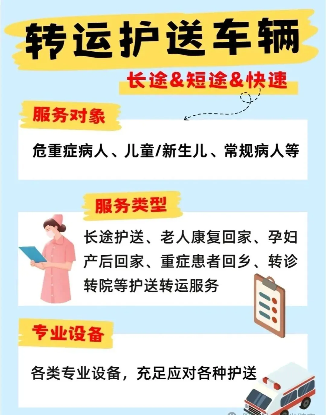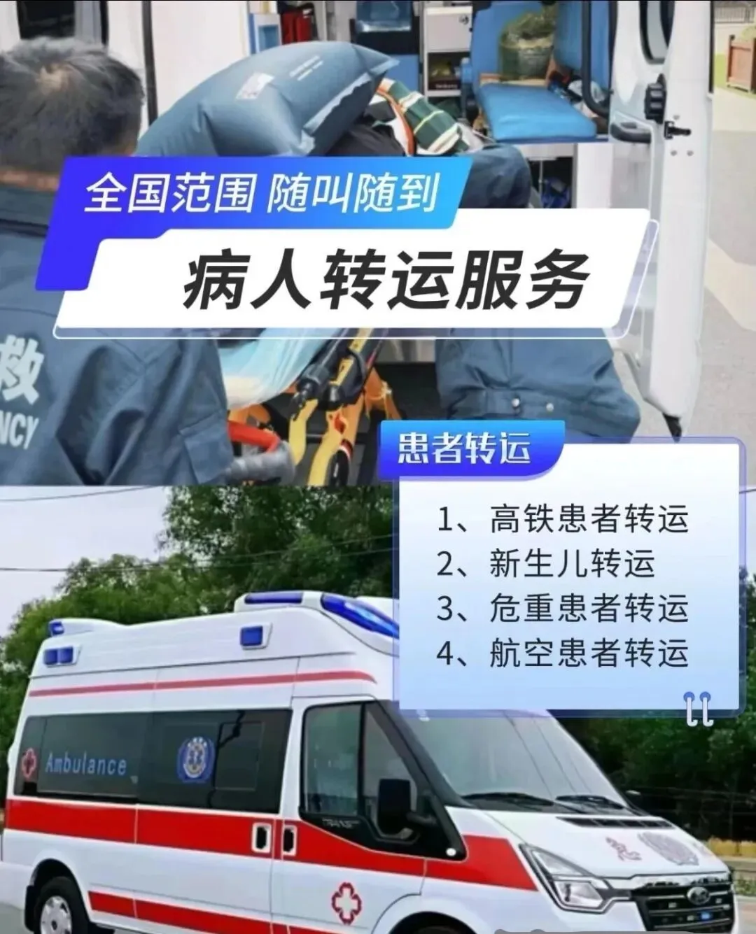 每辆转运救护车均搭载行业顶配医疗设备,覆盖生命支持、实时监护、应急救治全场景:
