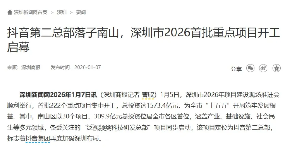 有消息称,这次的第二总部是建设给AI Lab研究中心和SaaS平台服务中心的,为支撑抖音、今日头条等核心产品后续研发,这也标志着抖音集团将再度加码深圳布局。