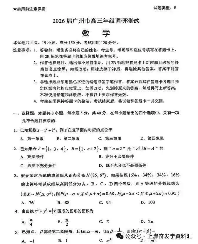 【广州零模】2026届广州市高三年级调研测试【全科】试卷答案汇总链接:https://pan.quark.cn/s/e2219c29ff41