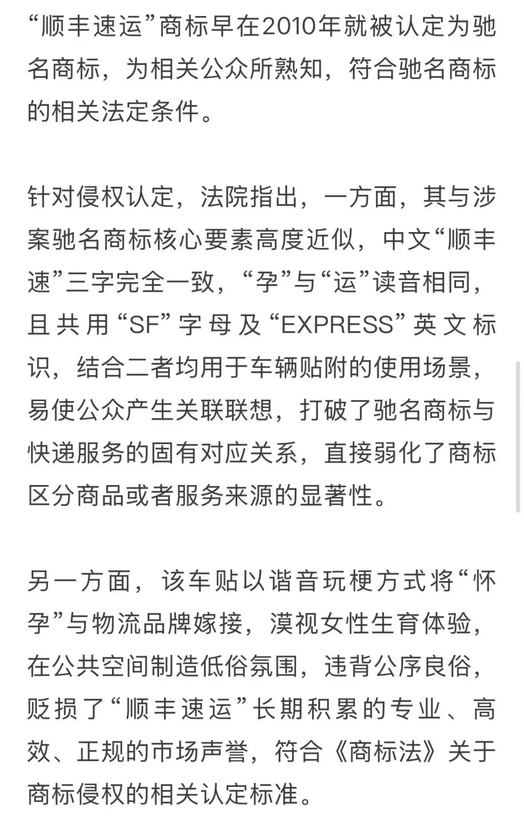 为维护自身名誉与合法权益,顺丰公司遂将店小二公司诉至法院。被告店小二公司辩称,“速孕”字样是网络流行语的幽默表达,消费者出于审美或趣味购买,不应定性为侵权。