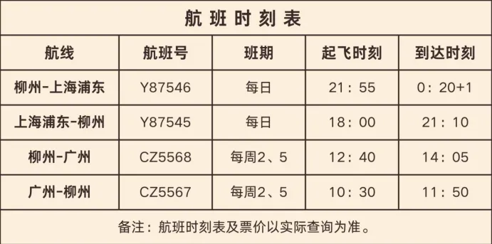2月6日-3月28日期间,在原有东方航空执飞的基础上,金鹏航空强势加入,每日新增1班往返航班,调整后,上海浦东—柳州航线将达到每日3班。不管是沪柳两地探亲访友,还是去上海逛吃打卡,都能灵活选择时间。