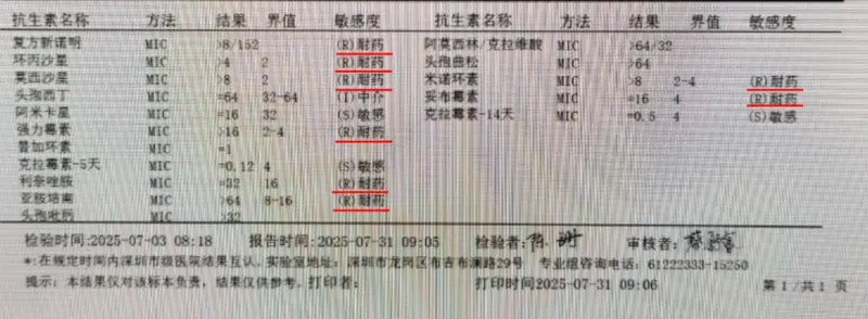 “我原来不知道这个细菌代表什么意思,一查才发现问题严重,”陈伯表示。找到病因后,当地医院继续为他进行抗感染治疗,虽然流脓有所减少,但效果不彻底,且伴随心悸、恶心、白细胞降低等药物副作用,病情始终未见根本好转。