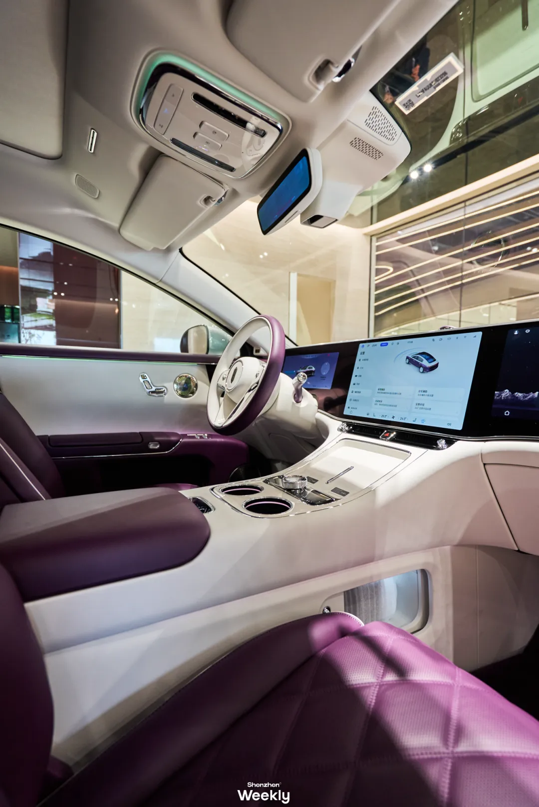 云镜银紫的配色版本,高级优雅之中又不失时尚感。这辆被喻为是“时代旗舰”的车型,将豪华的感知,从视觉延伸至每一次触碰与乘坐。