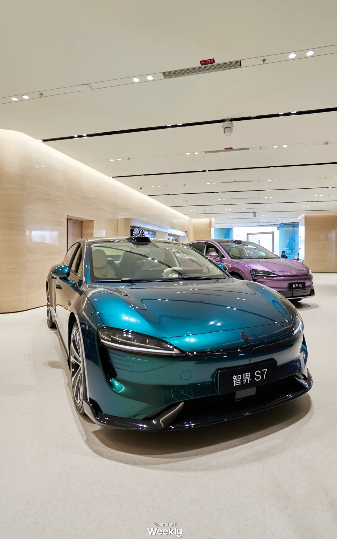 在深度体验尊界S800之后,可以移步店内更开阔的展区。这里汇聚了鸿蒙智行全系车型——从旗舰SUV问界M9、最美旅行车享界S9T,到灵动个性的智界S7等五界产品均有陈列,各自诠释着不同的智慧出行理念。