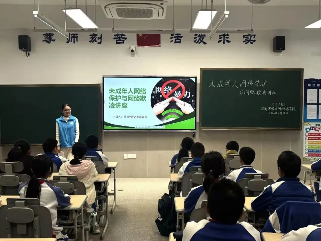 2026年1月12日,学校邀请社工服务中心老师走进六(1)班,开展“未成年人网络保护与网络欺凌防治”主题普法讲座。老师结合真实案例,详细讲解网络侵害预防、学生欺凌应对等实用知识,引导学生增强自我保护意识,学会运用法律武器守护自身合法权益。