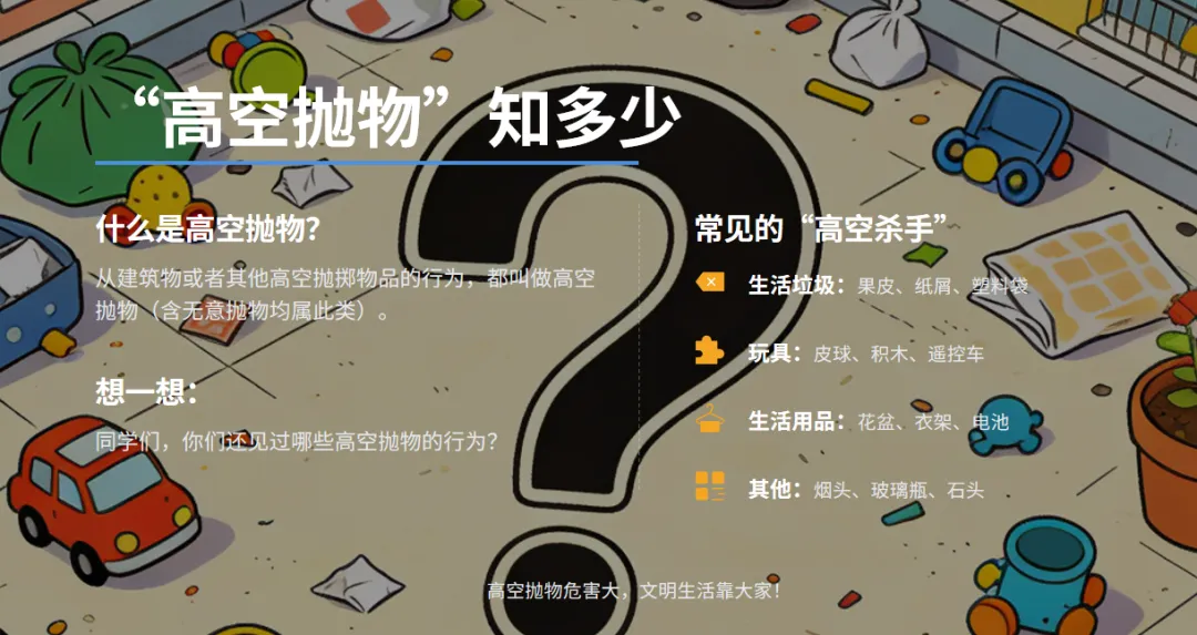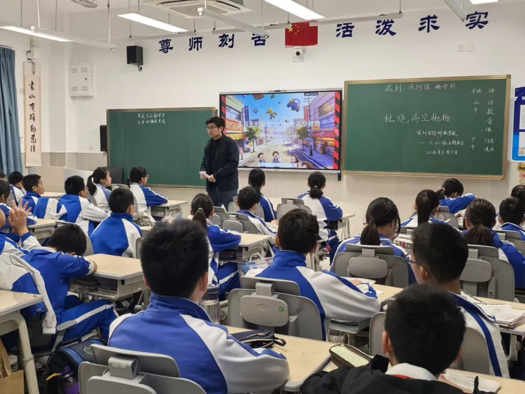 2026年1月15日,学校开展高空抛物专项安全教育。通过播放警示视频、讲解危害后果、明确校园全域监控覆盖情况,向学生普及防范及报告方法,强化日常及延时服务安全管理,筑牢校园安全防线。
