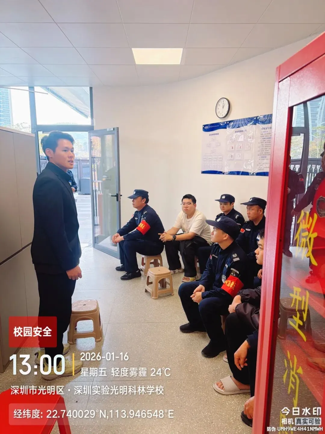 2026年1月16日,我校安全办召集安保队伍召开期末工作提醒会议,小结本学期安保工作,动员部署假期前安全保障工作。明确“守好门、净环境、树形象”工作要求,兼顾校园安全守护与家校服务质量,压实安保工作责任。