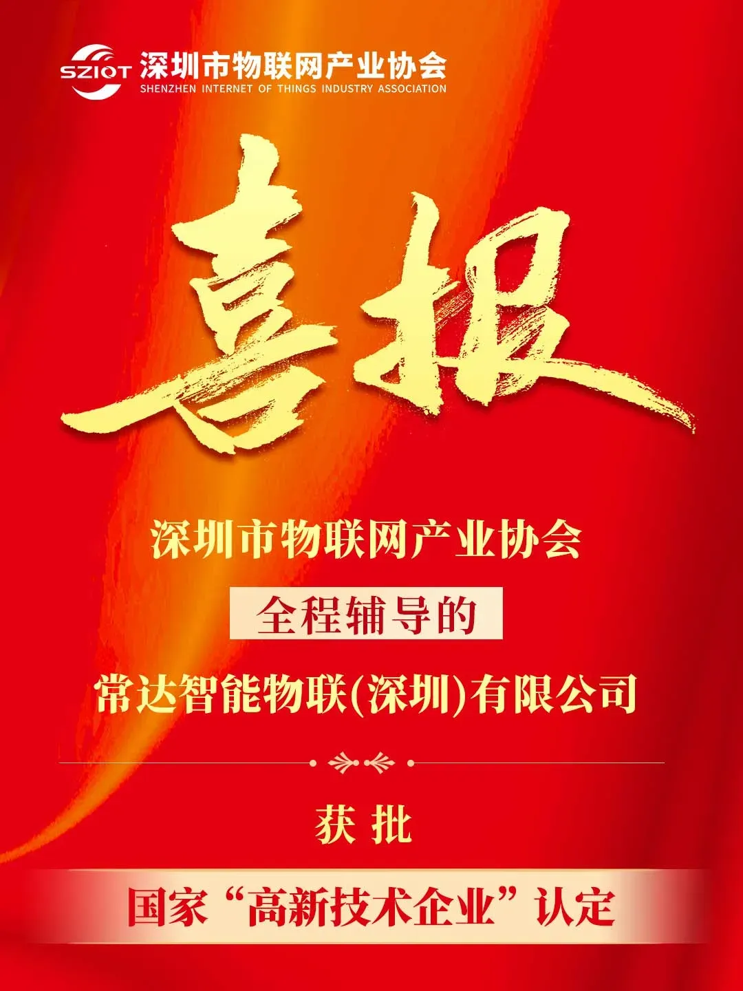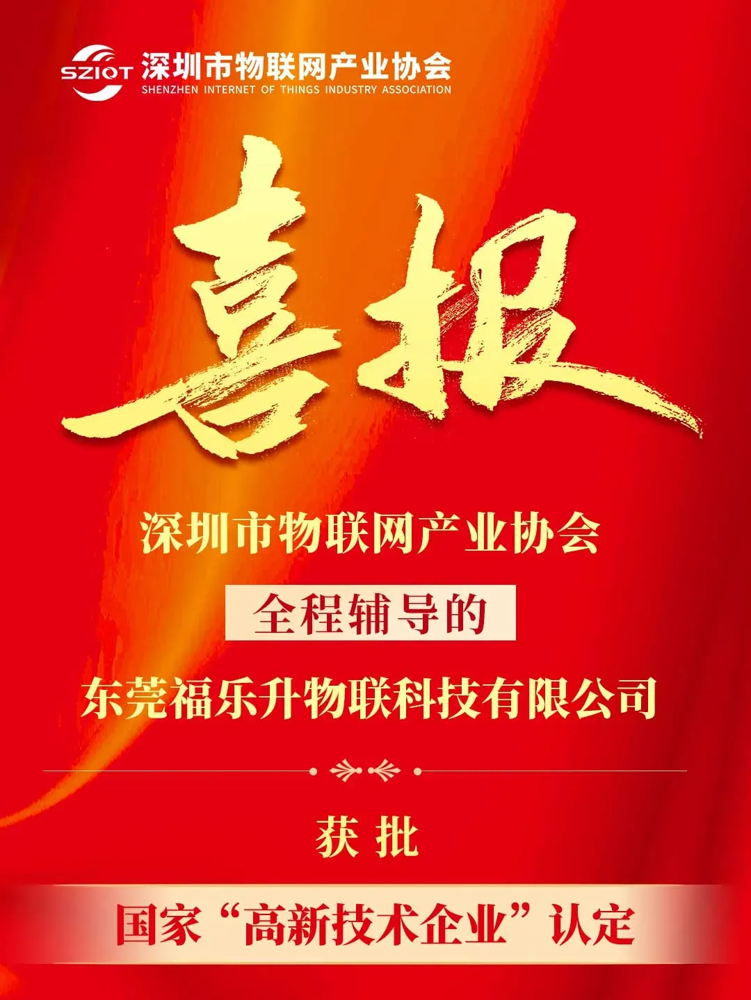 在产业发展支持性政策落地推进工作中,深圳市物联网产业协会精准锚定企业政策需求,以专业辅导赋能产业创新发展。协会全程辅导的理事单位东莞福乐升物联科技有限公司和会员单位常达智能物联(深圳)有限公司获批国家“高新技术企业”认定。