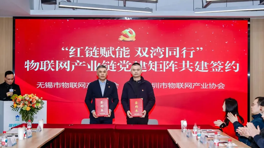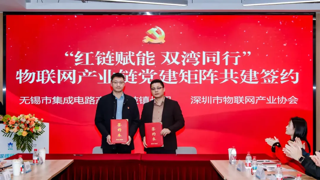 与无锡市集成电路产业科技镇长团签订《“红链赋能 双湾同行”物联网产业链党建矩阵共建协议》