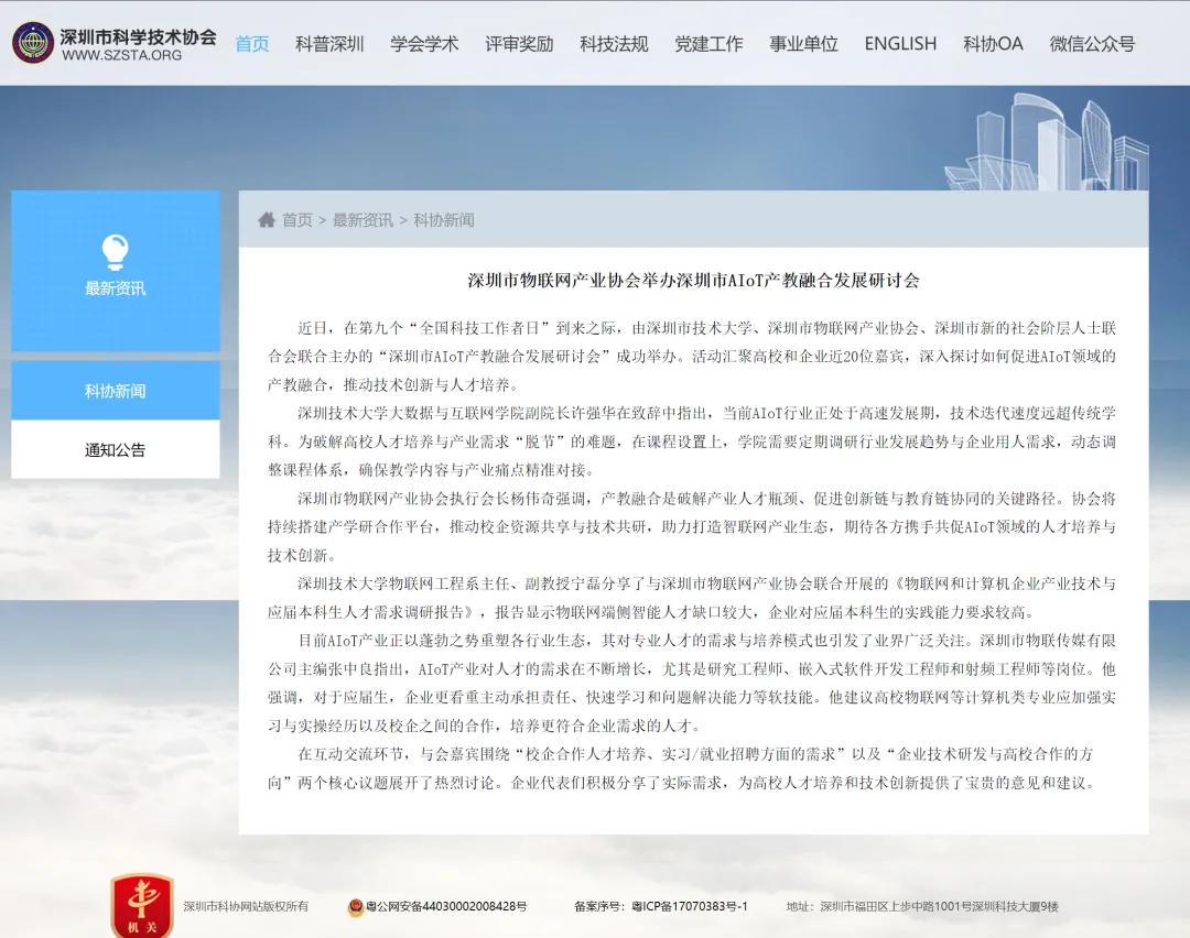 为推动AIoT领域技术创新与人才培养深度衔接,深圳市物联网产业协会积极搭建产学研协同平台,通过多元举措深化产教融合,全方位构建起产教良性互动、资源共享的生态体系。