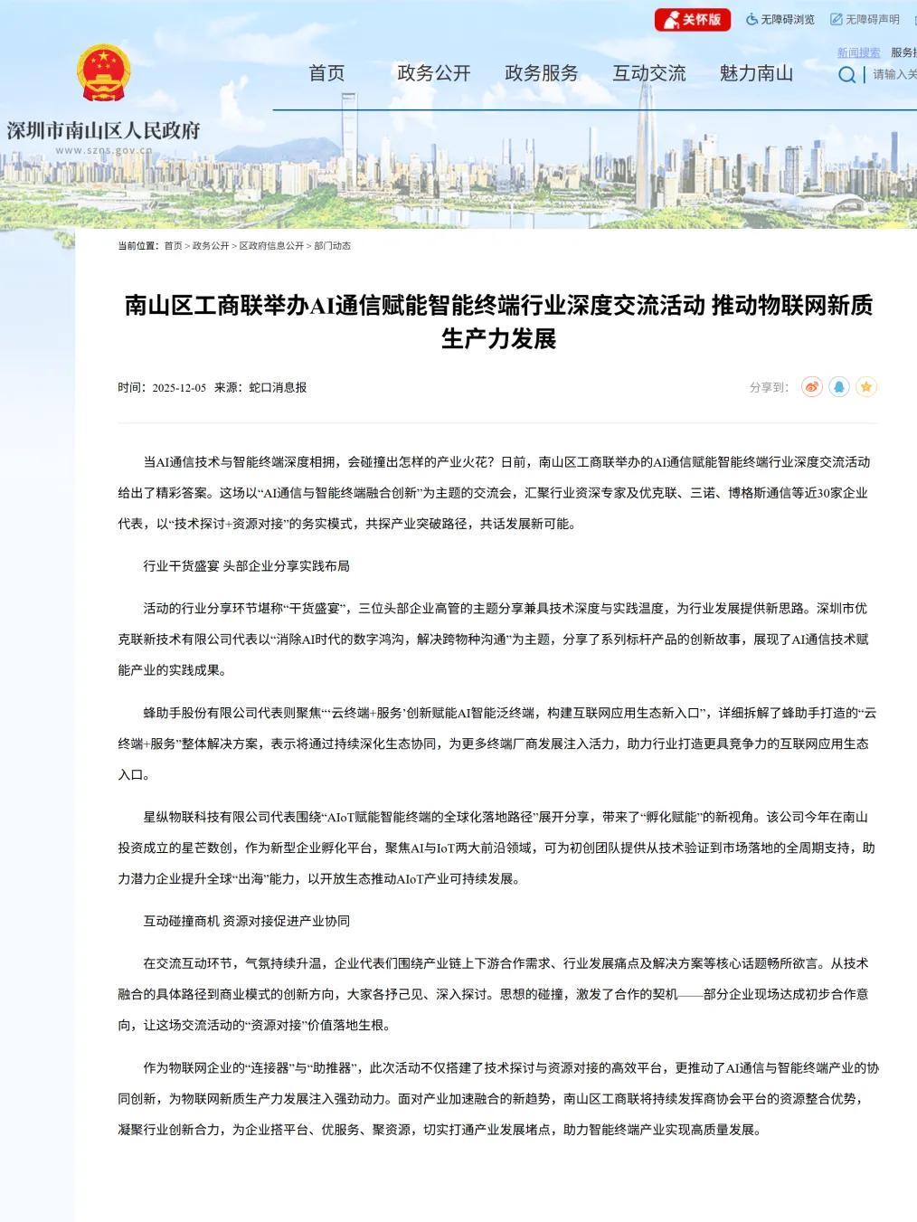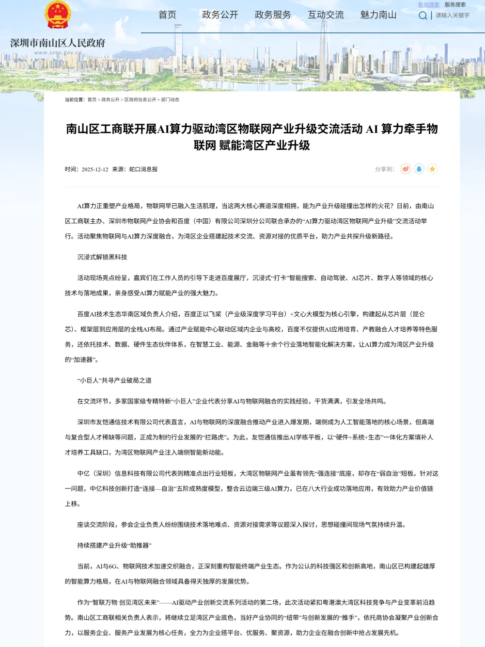 南山区人民政府官网