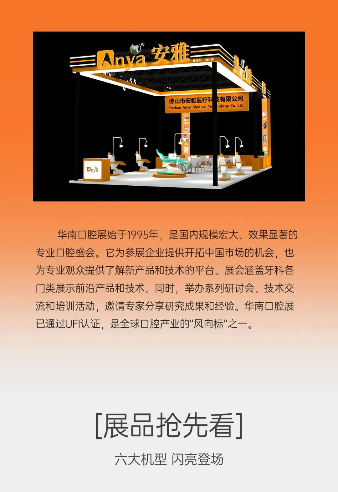 3月3日-6日,广州华南国际口腔展,安雅医疗以匠心赴盛会,以创新启新篇,诚邀您莅临展位,近距离体验高品质口腔设备,面对面交流行业发展趋势,携手深耕口腔领域,共筑健康未来!