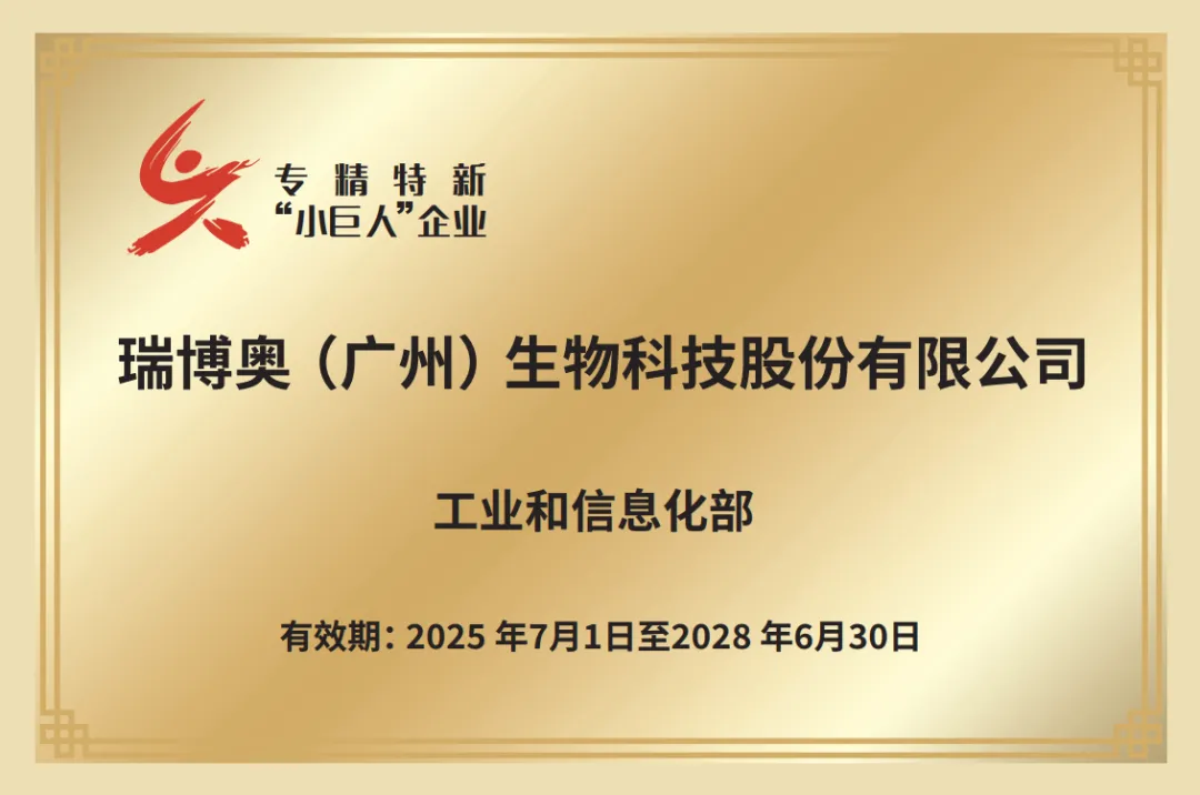 近日,瑞博奥(广州)生物科技股份有限公司凭借其在生物科技领域的突出创新能力和专业化水平,成功通过国家工业和信息化部审核,入选国家级专精特新“小巨人”企业名单,并获正式授牌!