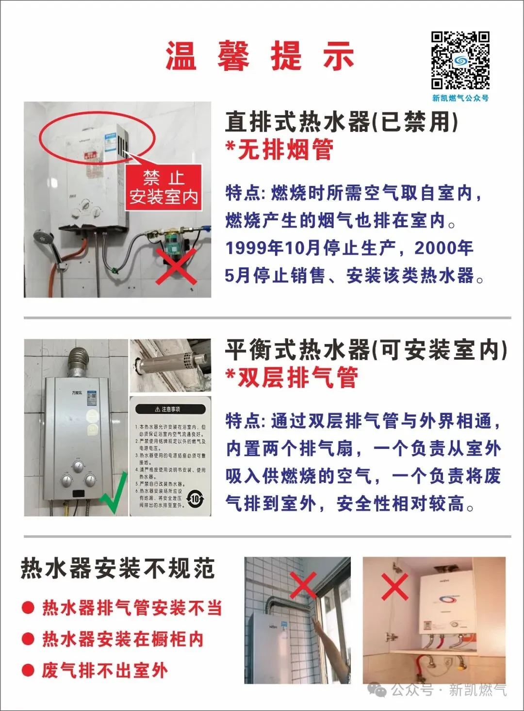 作为守护您全家用气安全的伙伴,新凯燃气始终将市民用气安全放在首位。今天就为大家梳理降温季用气安全要点,重点讲解热水器使用禁忌、一氧化碳中毒防范,以及如何快速分辨合格热水器,愿每一户家庭都能温暖过冬、安全用气。