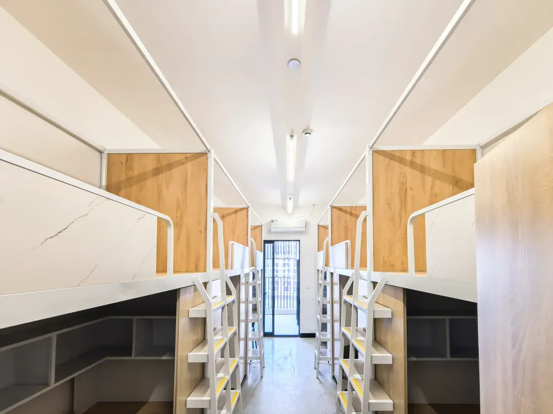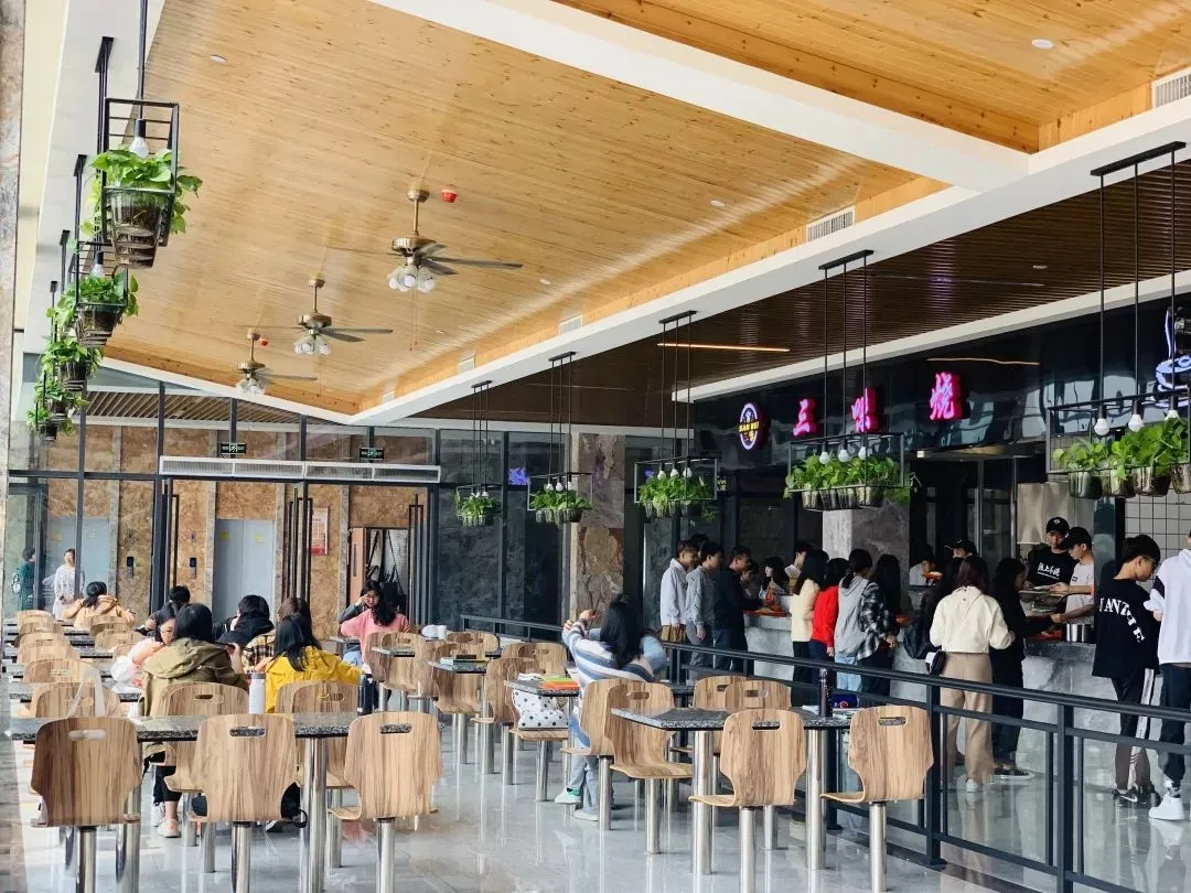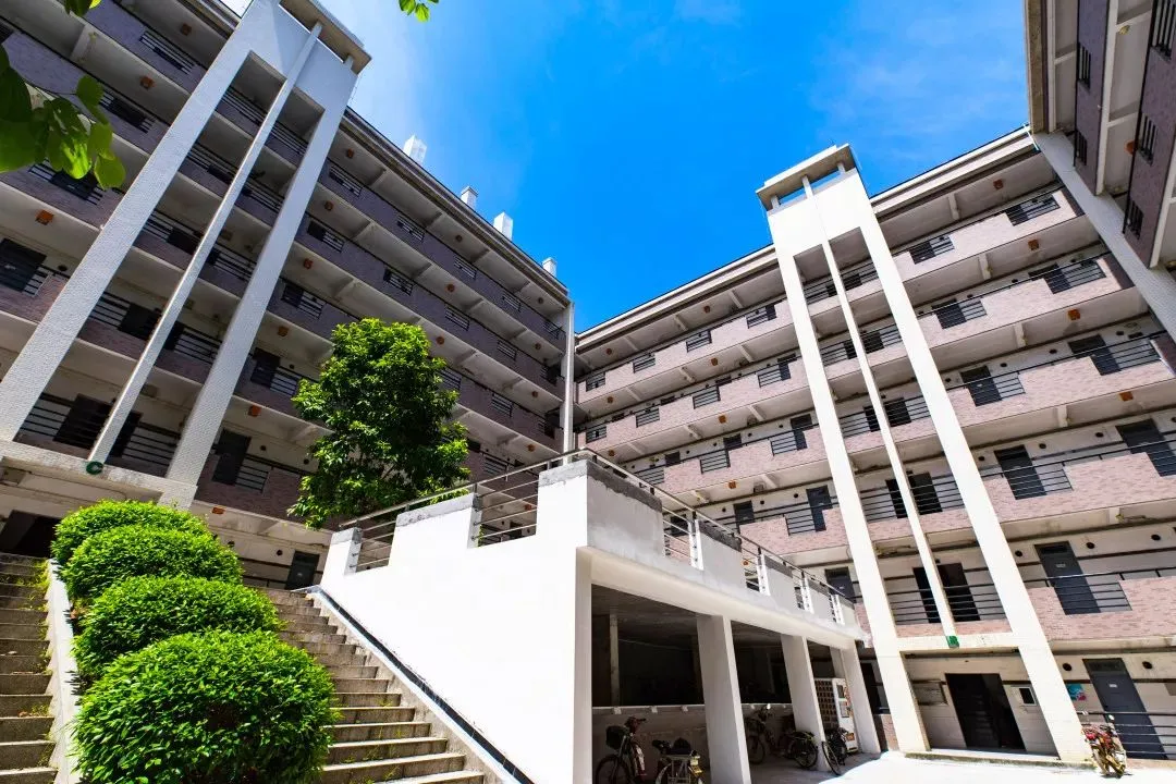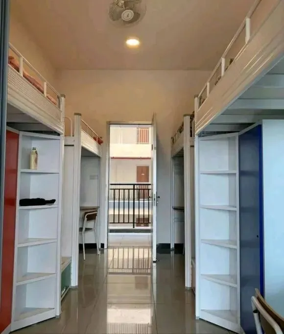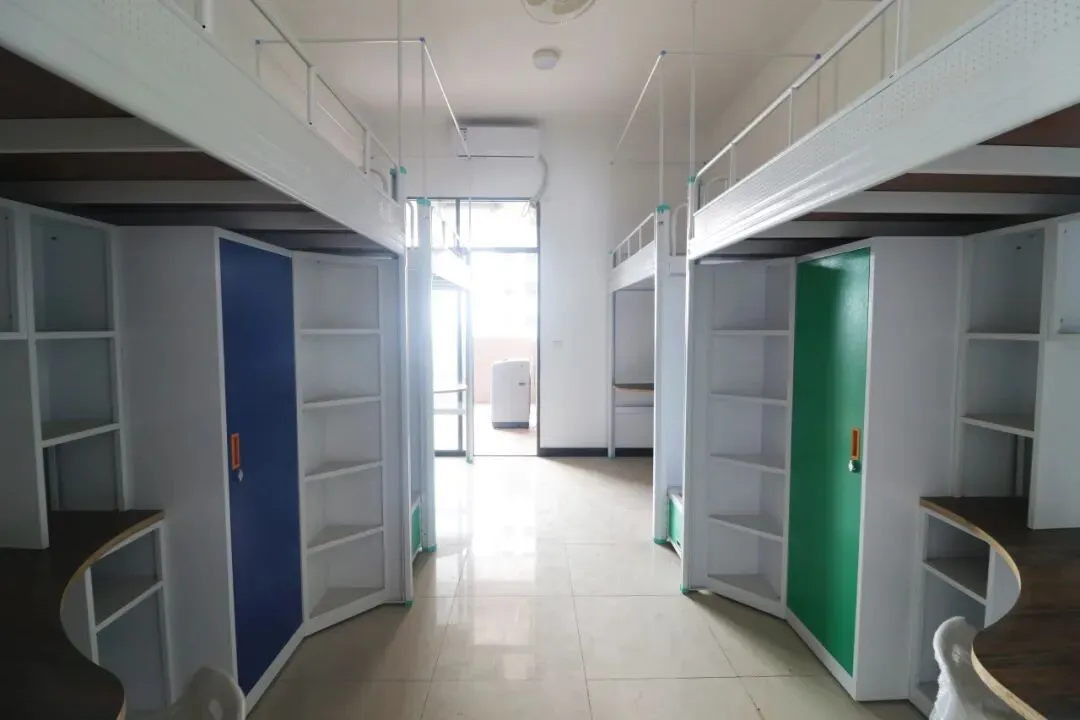 学生公寓设备齐全,宿舍均为4-6人间,上床下桌,每个房间均配有空调、独立卫生间和冲凉房、网络设施、太阳能热水器和直饮水,酒店式IC卡门锁,实现购物、餐饮等一卡通系统只能服务。