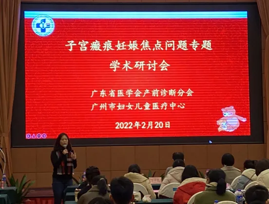 图1 谢红宁教授讲授子宫瘢痕妊娠超声诊断及预后评估
