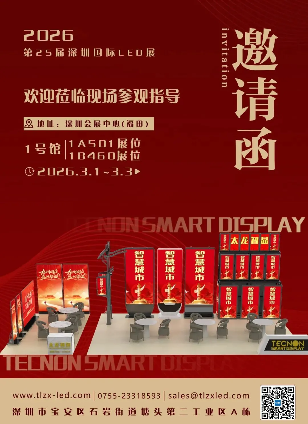 本次展会,太龙智显将携多款自主研发的LED显示屏产品重磅亮相,产品布局全面覆盖智慧城市、商业显示、数字标牌等核心应用领域。我们诚挚邀您莅临公司两大展位 ——1A501/1B460,亲身体验产品的卓越性能,切身感受太龙智显对品质的极致坚守与匠心追求。同时,我们热切期待与国内外行业同仁及合作伙伴深度交流洽谈,携手共探合作新机,共谋行业发展新篇。