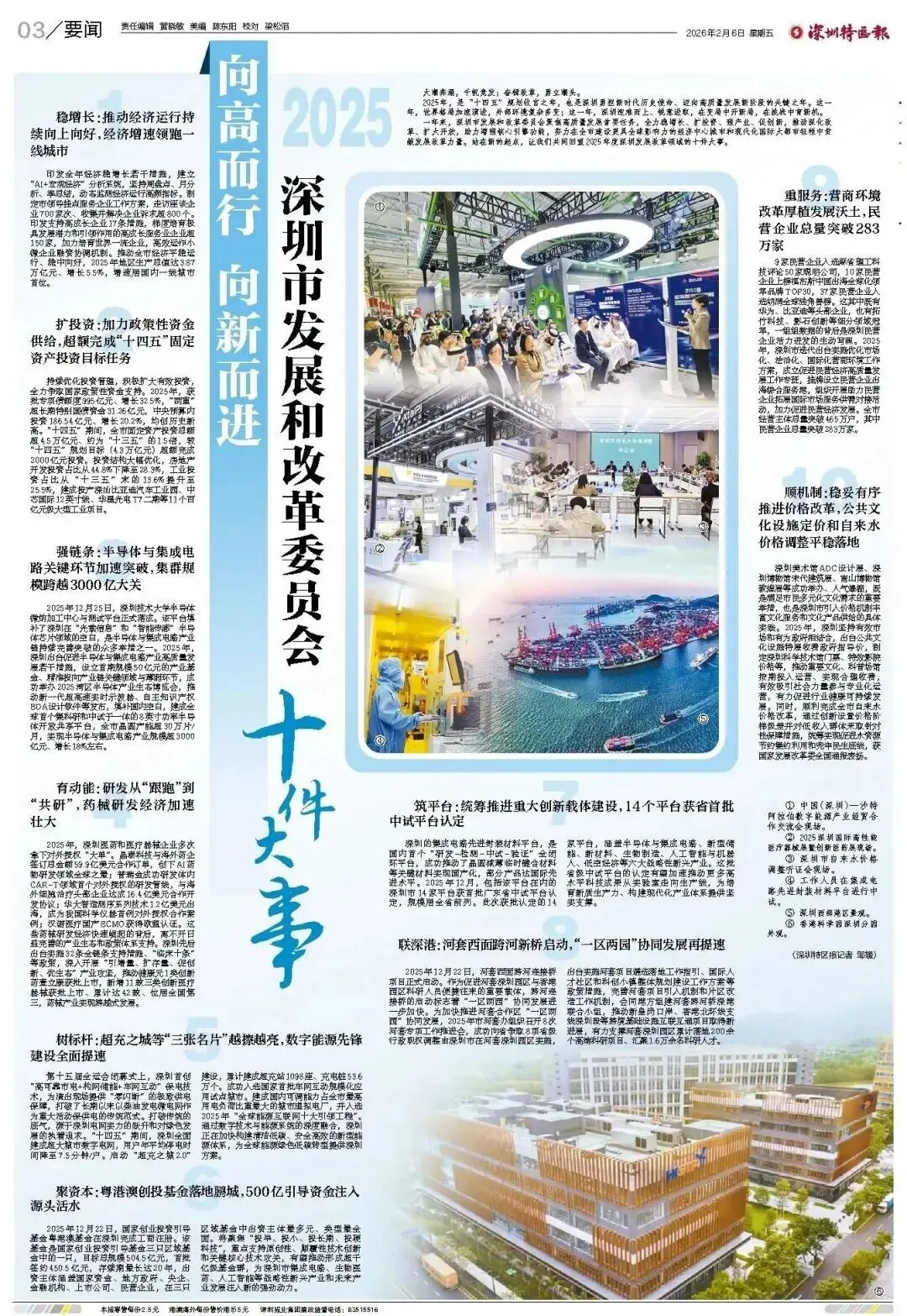 一年来,深圳市发展和改革委员会聚焦高质量发展首要任务,全力稳增长、扩投资、强产业、促创新,推动深化改革、扩大开放,助力增强核心引擎功能,努力在全市建设更具全球影响力的经济中心城市和现代化国际大都市征程中贡献发展改革力量。站在新的起点,让我们共同回望2025年度深圳发展改革领域的十件大事。