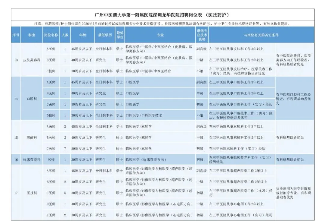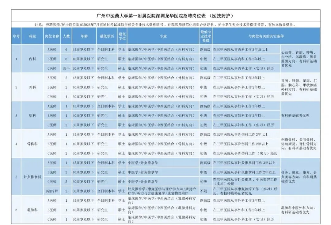 广州中医药大学第一附属医院深圳龙华医院(深圳市龙华区中医院)2026年招聘公告