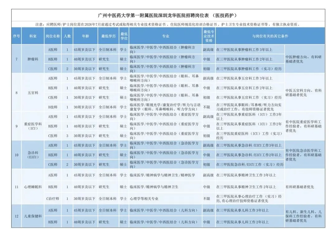 附件1:广州中医药大学第一附属医院深圳龙华医院2026年招聘岗位表.pdf