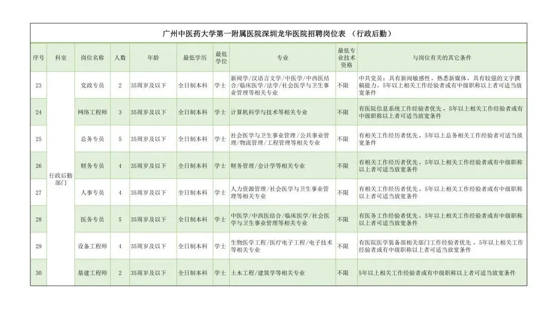 因深圳龙华医院业务建设及人才储备发展需要,现面向社会招聘工作人员。竭诚欢迎全国优秀人才来院工作!