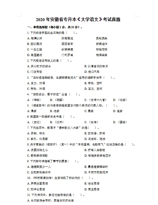 A.《诗经》B.《离骚》C.《古诗十九首》D.《论语》
